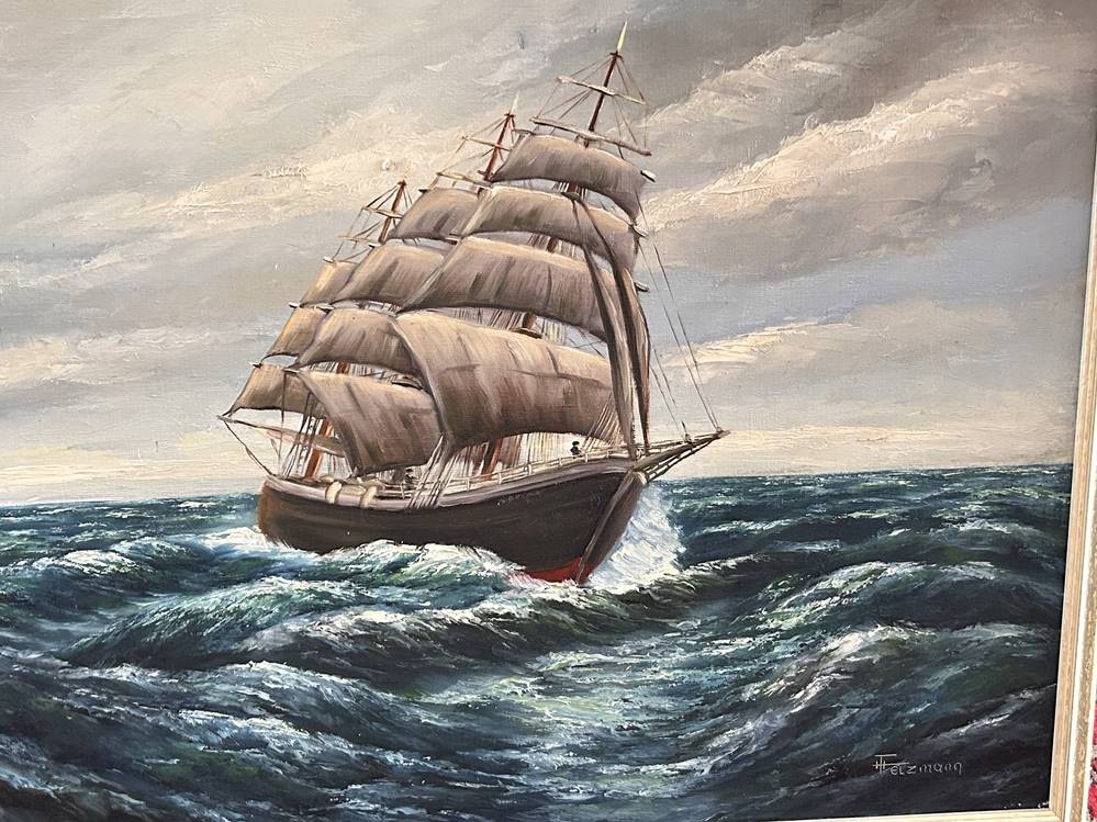 H-Felzmann "Segelschiff auf See", Öl/Leinen, gerahmt, RG RG 66x84 [1]