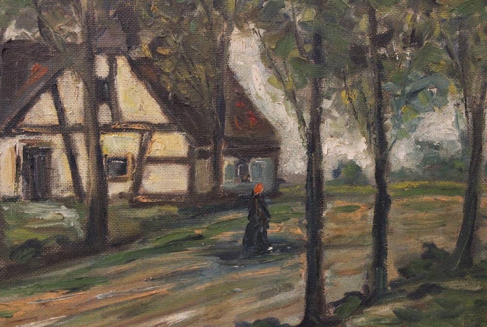 H.Fritz, Gehöft, Öl/Hartfaser, gerahmt, RG 49 x 56,5cm
