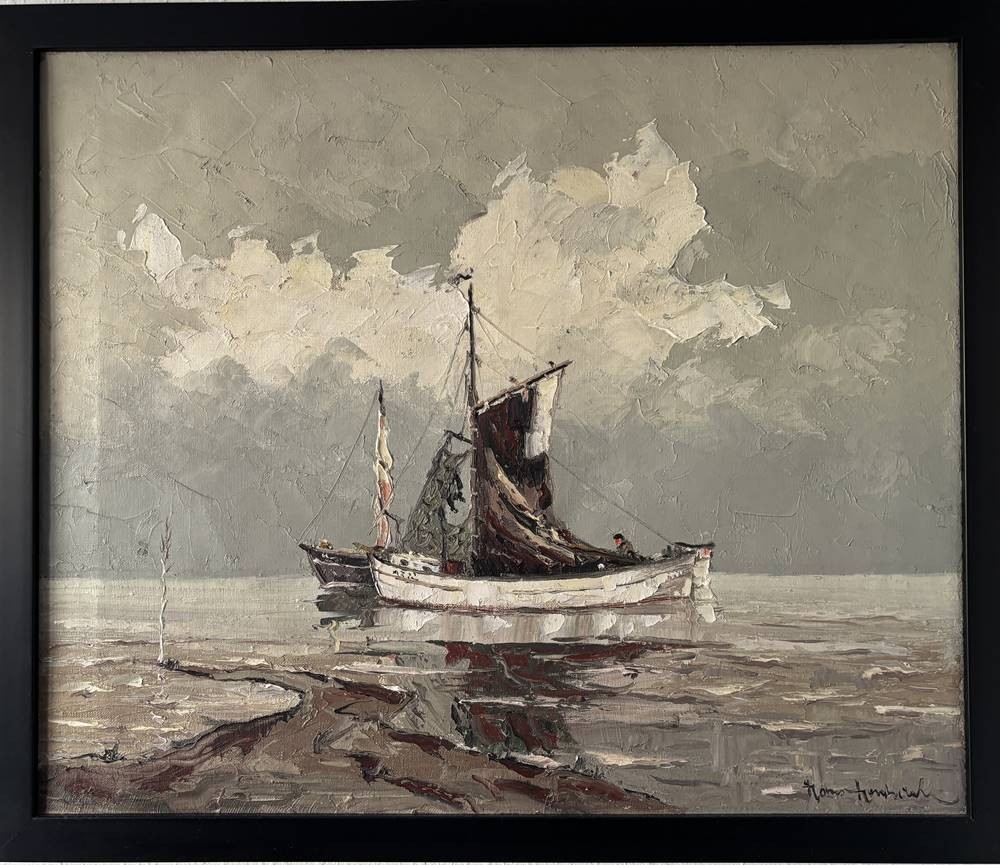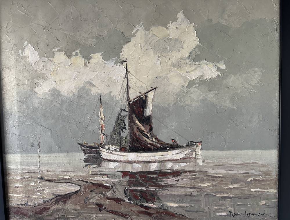 Hans HENTSCHKE (1889-1969), "Fischerboote auf der Weser", Öl/Leinen, alt gerahmt, RG 57x65 cm [1]