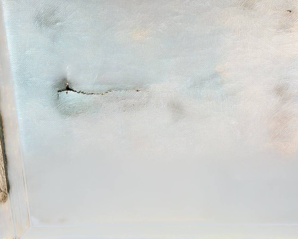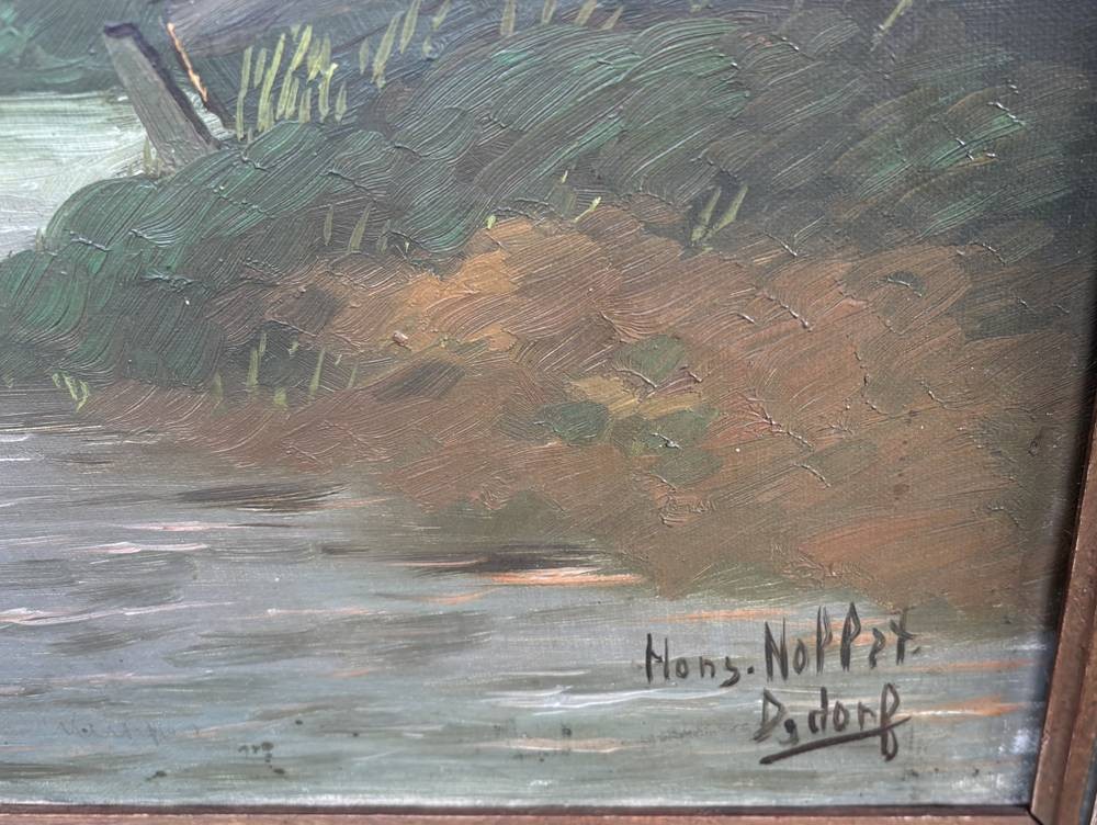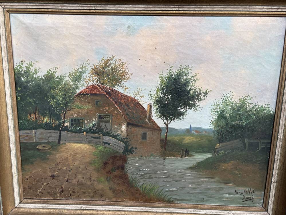 Hans Noppet (oder ähnlich?), Düsseldorf "Rückseite einer alten Kate" Öl/Leinen, gerahmt, RG 75x94 cm (Motiv wie vorher!) langer Riss in [1]