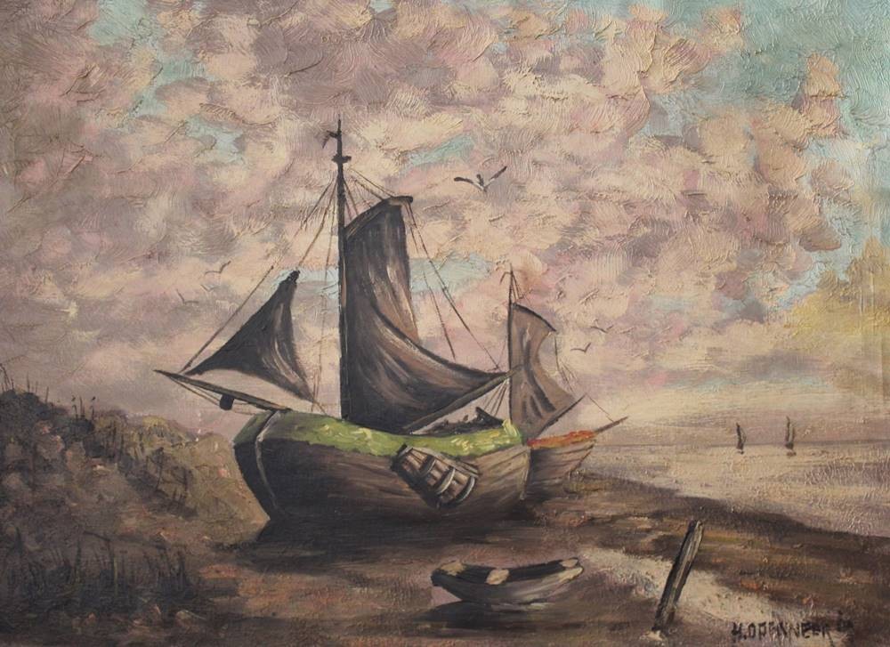 Herman OPENNEER (1935-2017), Boot am Strand, Öl/Leinwand, gerahmt, RG 62 x 81cm, Leinwand müsste neu gespannt werden, Sperrgutversand! [1]
