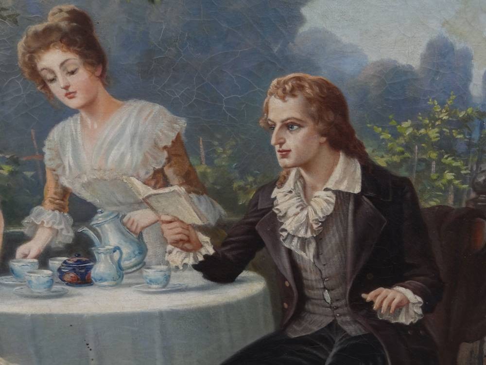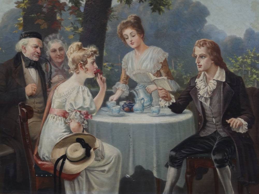 Jon POPP (1862-1953) "Gartengesellschaft", Öl/Leinen, gerahmt, RG 68 x 93 cm, Sperrgut! [1]