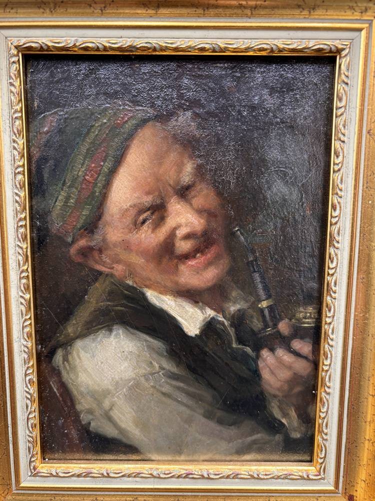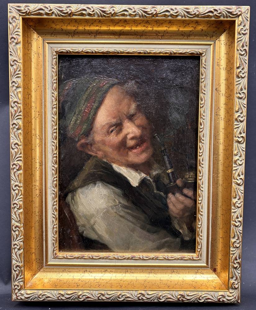 Karl Franz Eduard von Gebhardt (1838-1925) "Pfeifenraucher" Öl/Holz, gut gerahmt, Platte 19x13 cm, RG 26x20,5 cm, mittig sign./datiert?? [1]