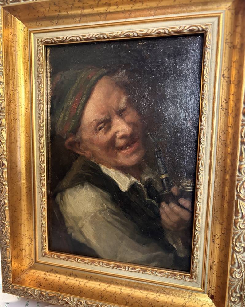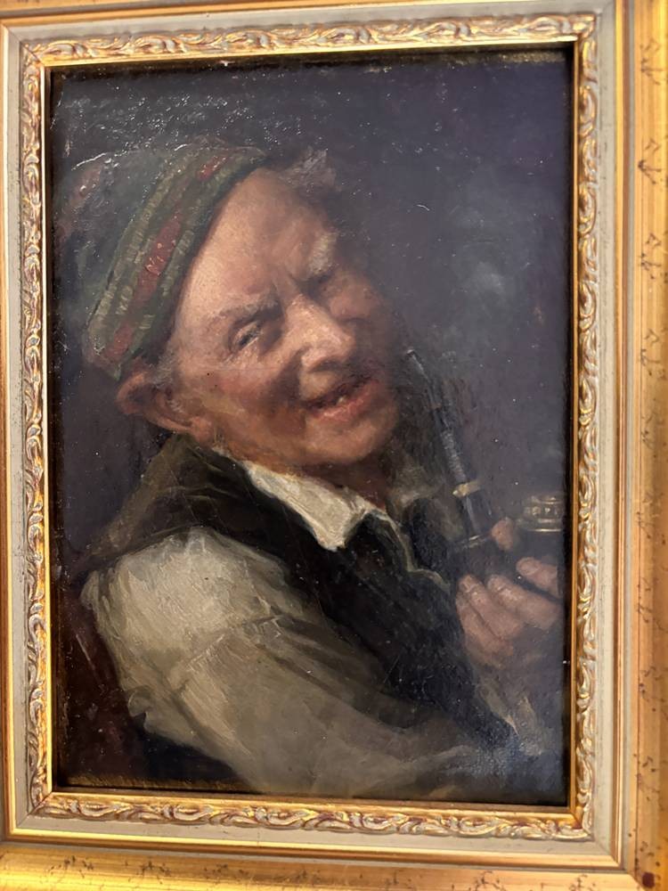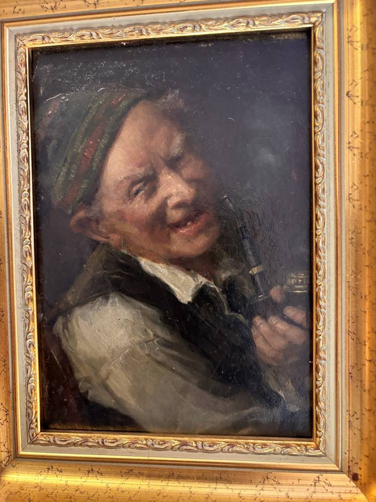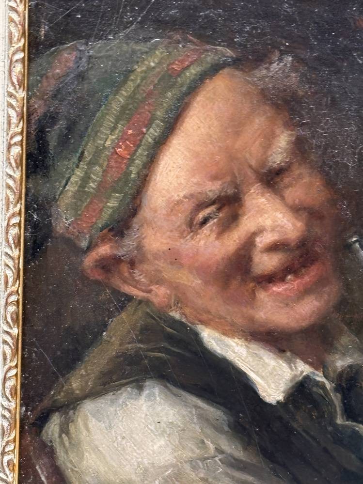 Karl Franz Eduard von Gebhardt (1838-1925) "Pfeifenraucher" Öl/Holz, gut gerahmt, Platte 19x13 cm, RG 26x20,5 cm, mittig sign./datiert??