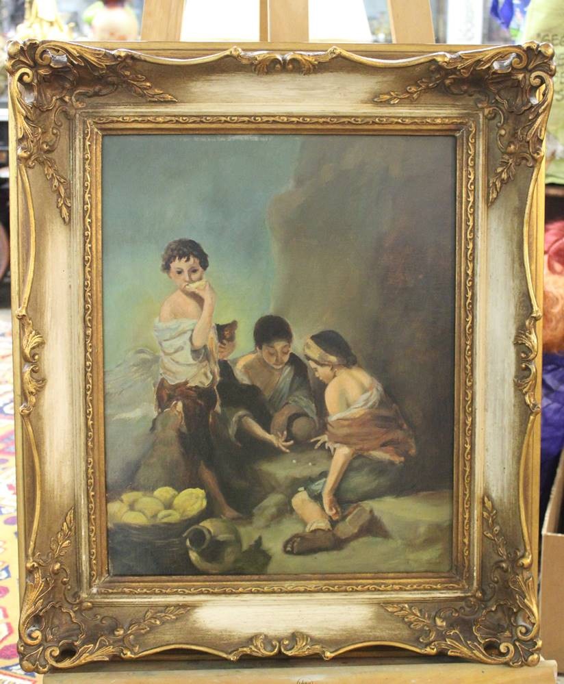 Kinder mit Früchten, Kopie nach Murillo, signiert Herz, Öl/Leinwand, gerahmt, RG 69 x 59cm.