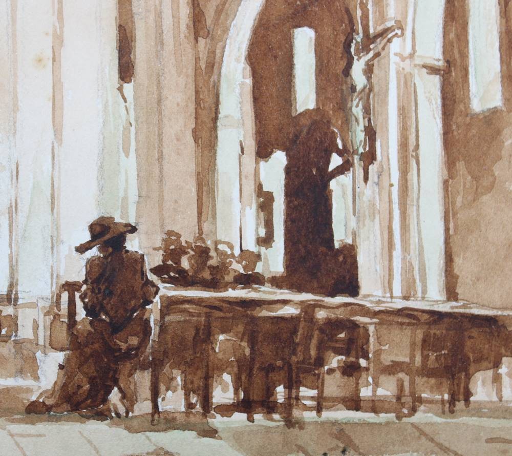 Kircheninterieur, monogrammiert "AL", Tusche, ungerahmt, BG 21 x 19cm [1]