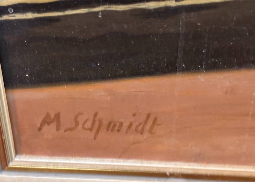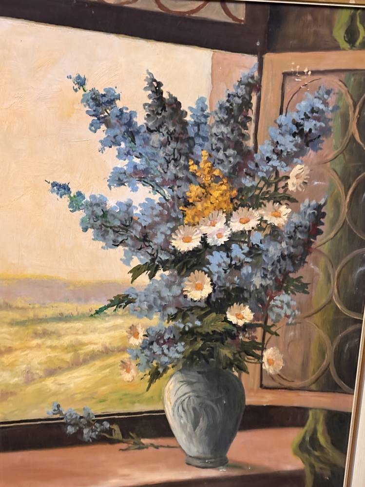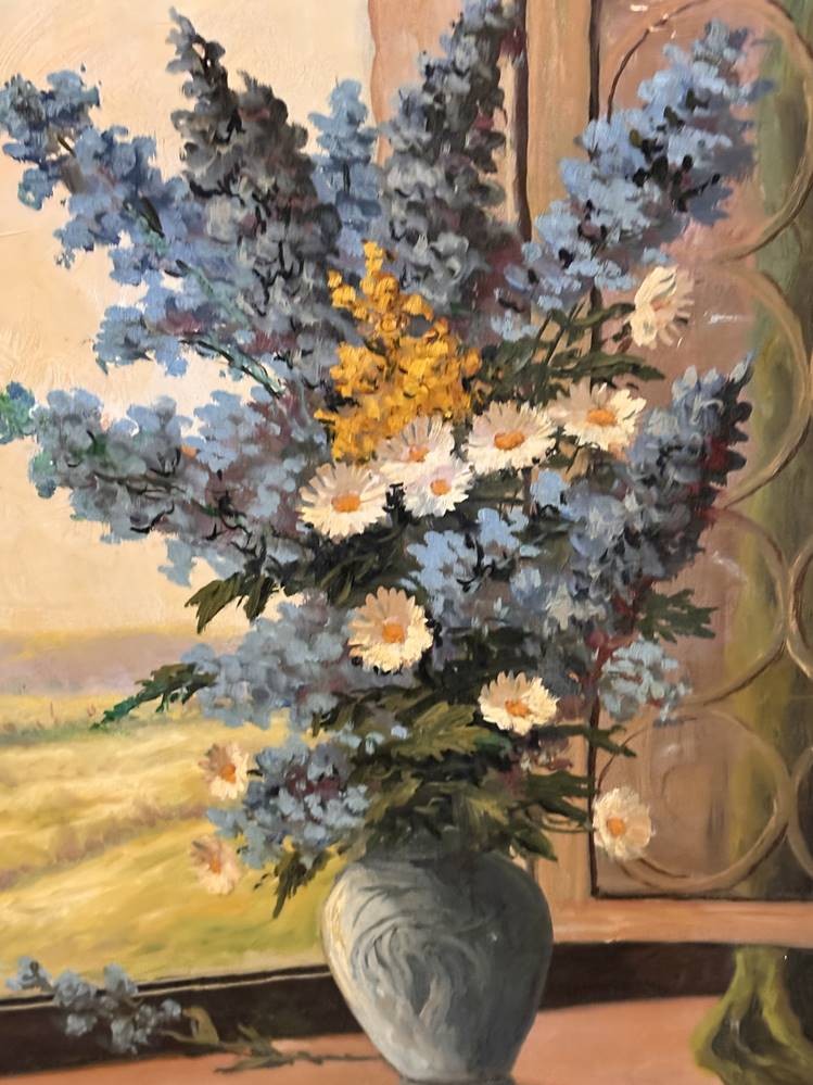 M. Schmidt "Blumenvase im Fenster" Öl/Platte, alt gerahmt, RG 70x60 cm [1]