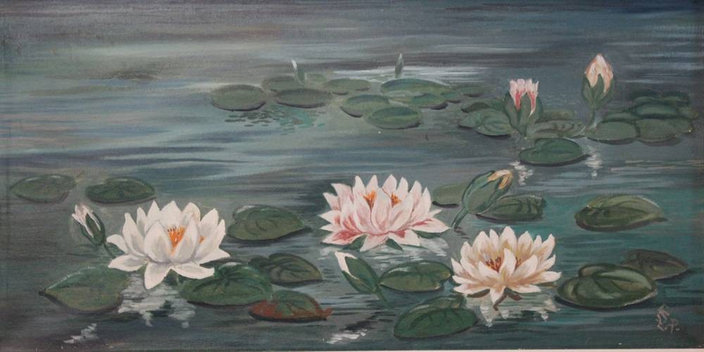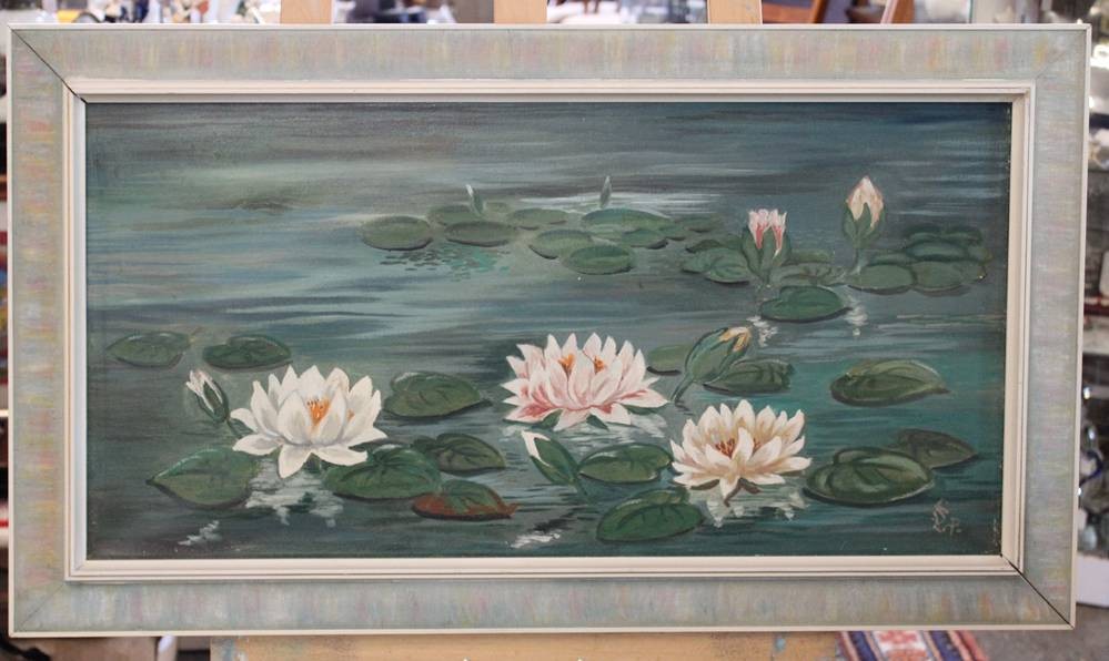 monogrammiert, Seerosen, Öl/Leinwand, gerahmt, RG 52,5 x 93,5cm [1]