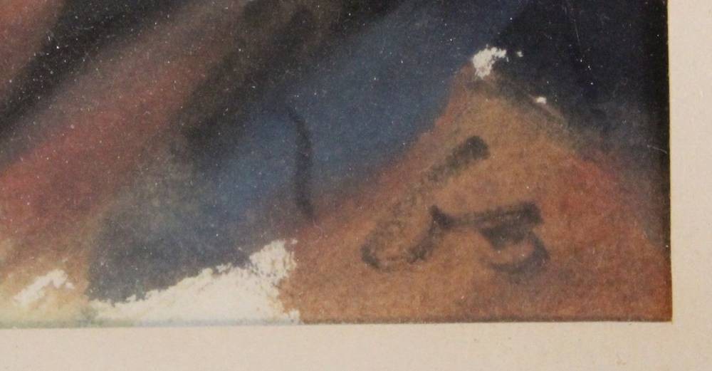 monogrammierter Waldweg, Aquarell, gerahmt/Glas, RG 61 x 74,5cm [1]