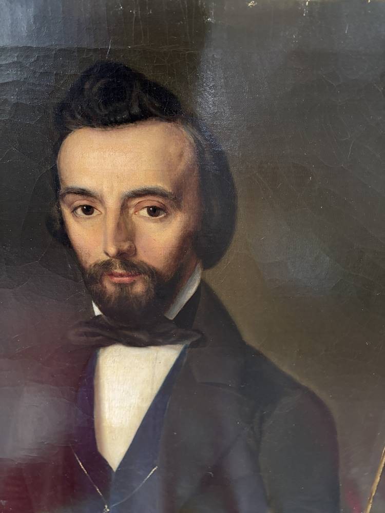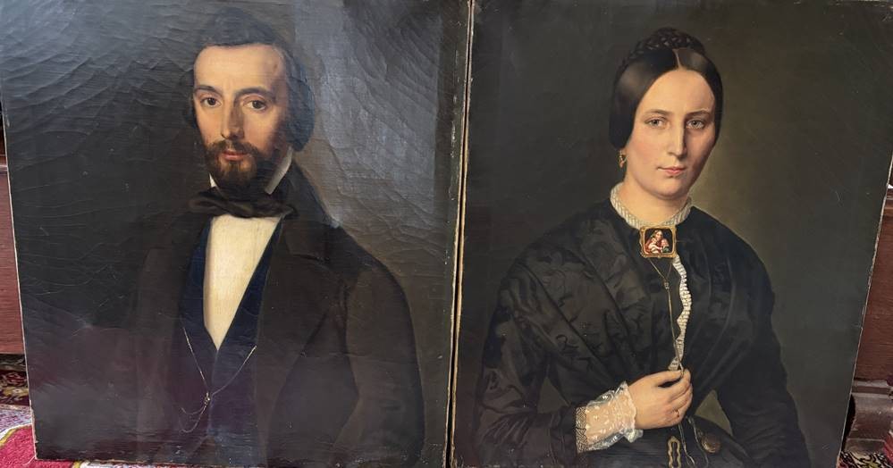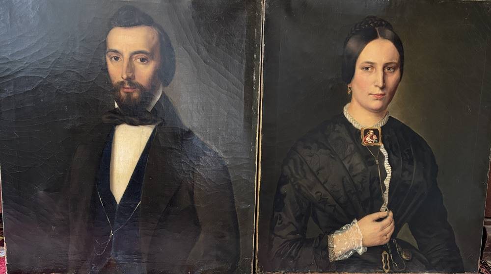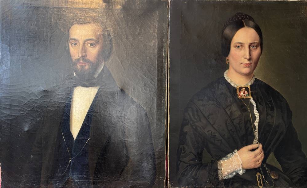 Paar Biedermeier-Portraits um 1850, Öl/Leinen, keine Signatur gefunden, guter, sauberer Zustand, ne ca. 73x61 cm [1]