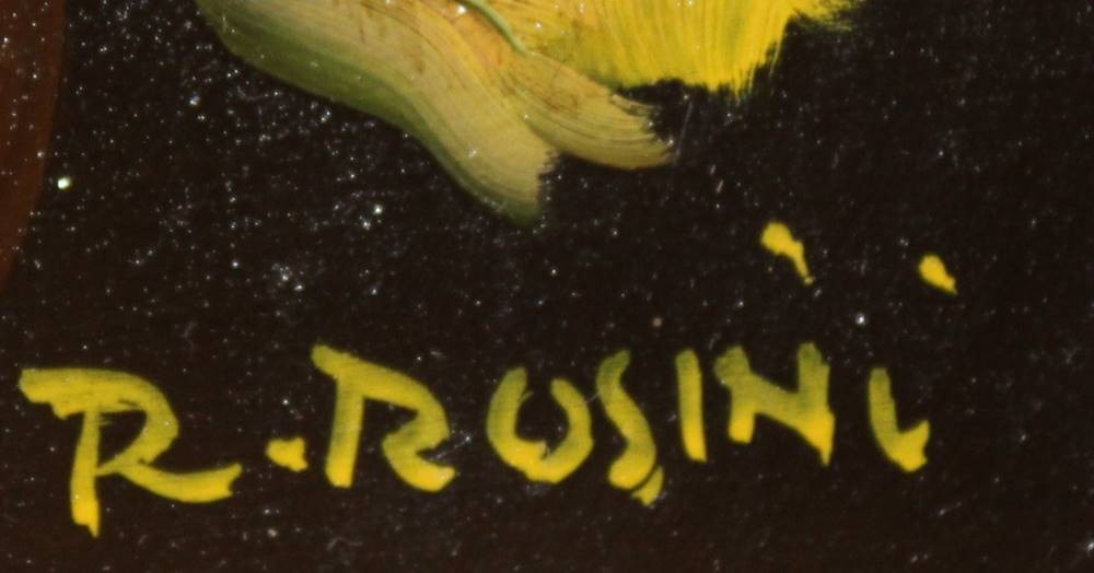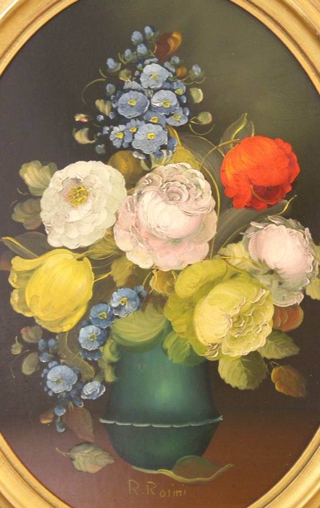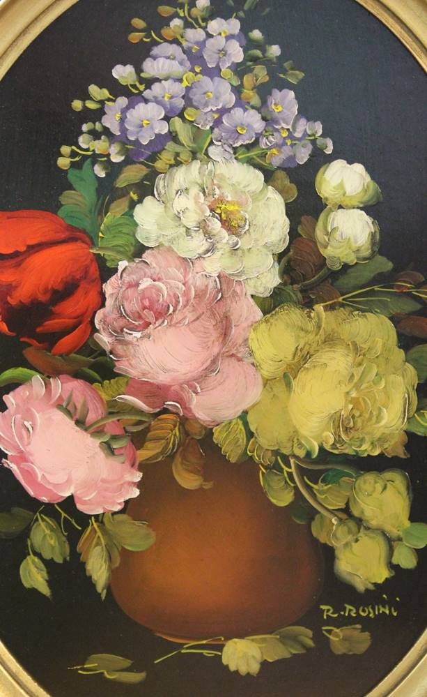 Paar Stilleben, R.Rosini, Öl/Hartfaser, oval gerahmt, RG 47 x 37cm. [1]
