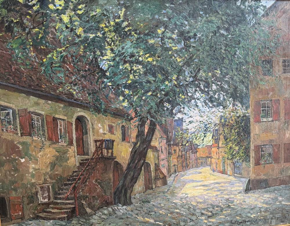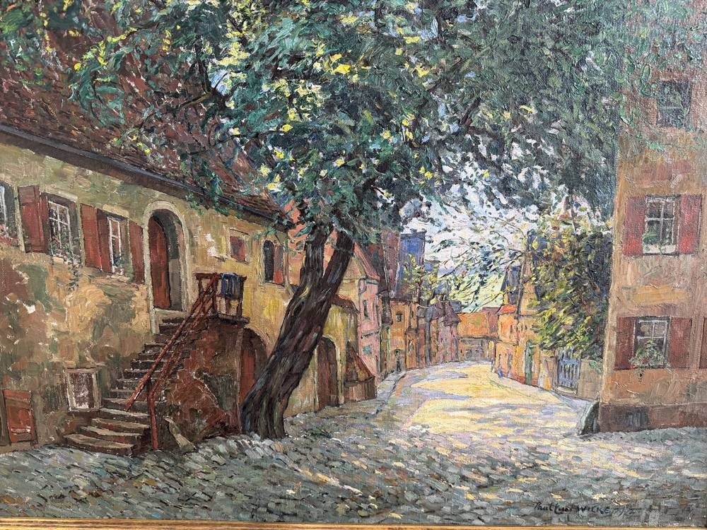 Paul Ernst WILKE (1894-1972) 1923 "Strasse in Rothenburg/Tauber" Öl/Malfaser, gut gerahmt, RG ca. 90x120 cm [1]