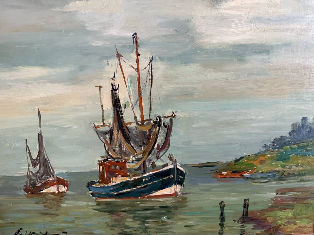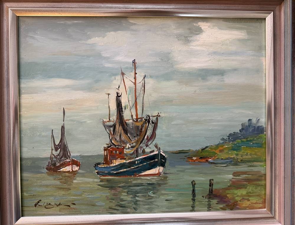Paul Ernst WILKE (1894-1972) "Krabbenkutter vor Küste" Öl/Platte, gerahmt, RG 60x52 cm [1]