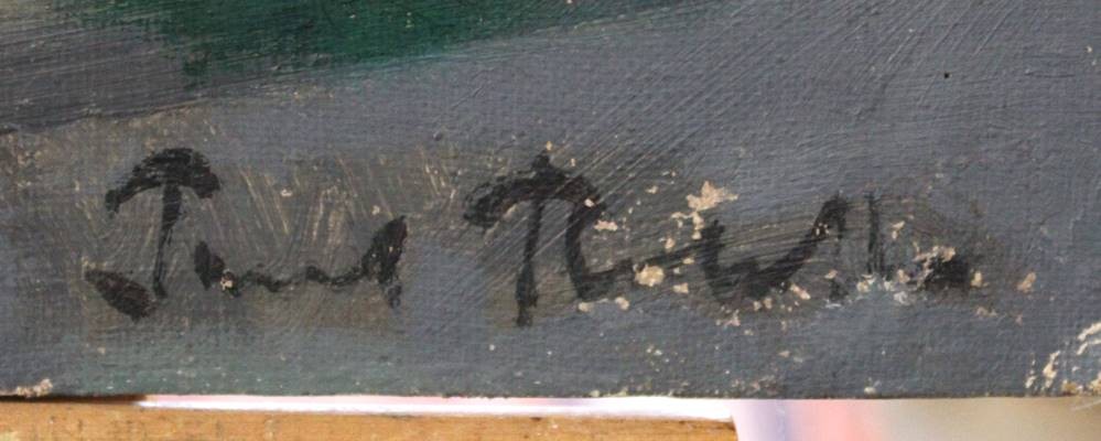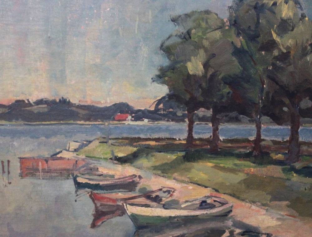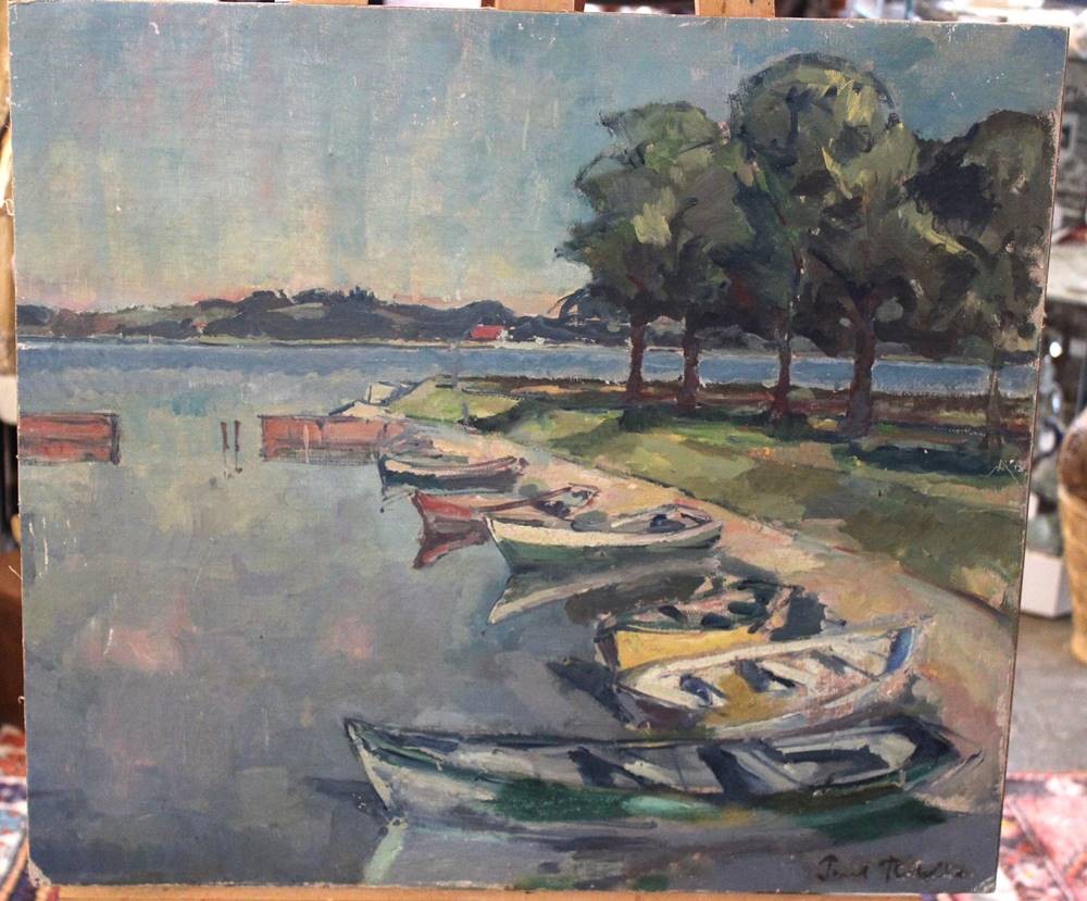 Paul...?, Ruderboote am See, Öl/Hartfaser, ungerahmt, restau.bed., 56,5 x 62,5cm [1]