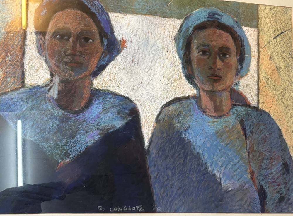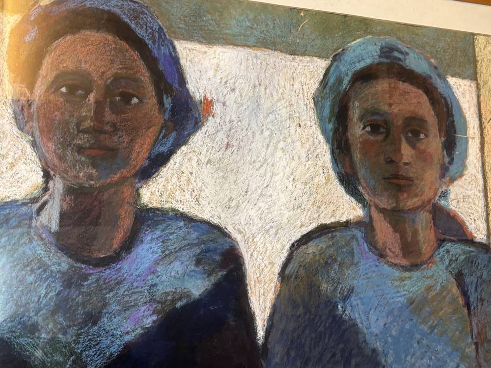 Peggy Langlotz (1976) "Zwei Frauen" Mixed Media/Öl, schmal gerahmt/Glas, RG 115x83 cm (Sperrgut), s. homepage