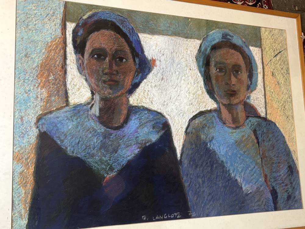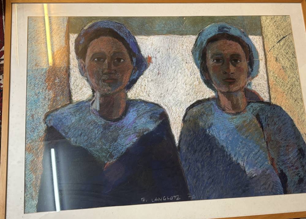 Peggy Langlotz (1976) "Zwei Frauen" Mixed Media/Öl, schmal gerahmt/Glas, RG 115x83 cm (Sperrgut), s. homepage [1]
