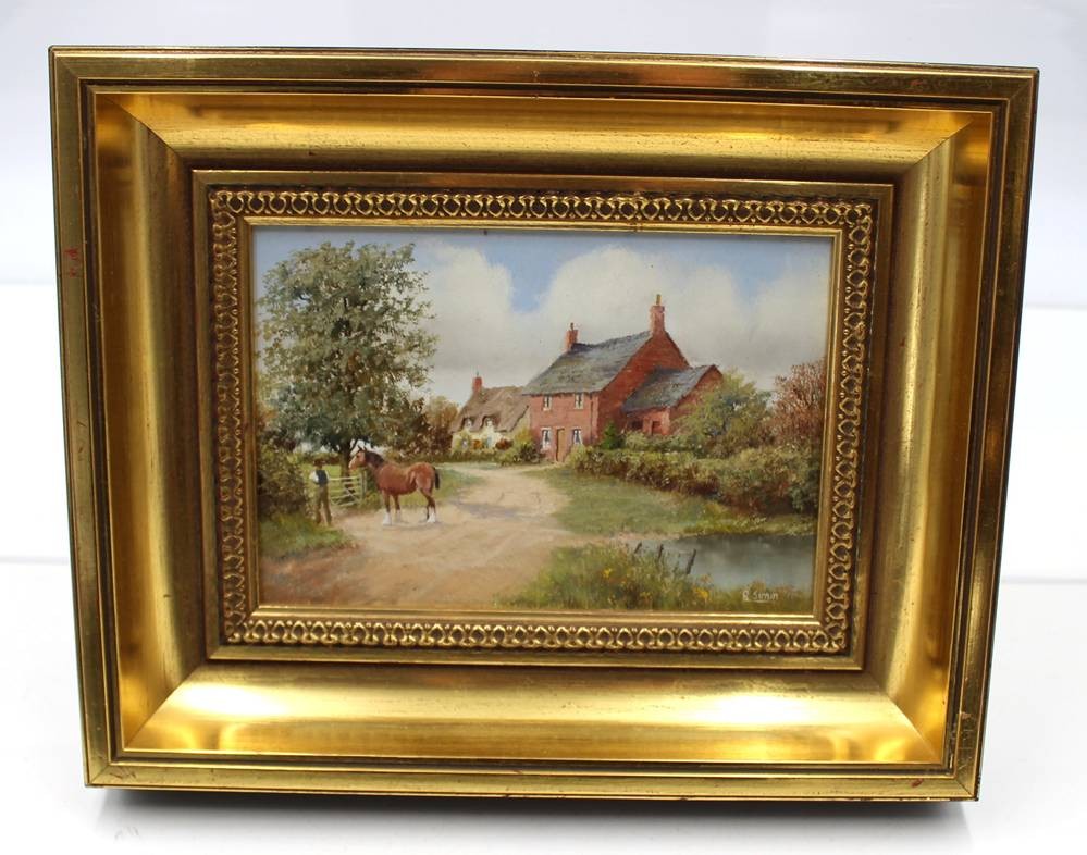 Richard SIMM (1926-2019), Gehöft, Öl/Kupfer, gut gerahmt, RG ca. 22 x 27cm [1]