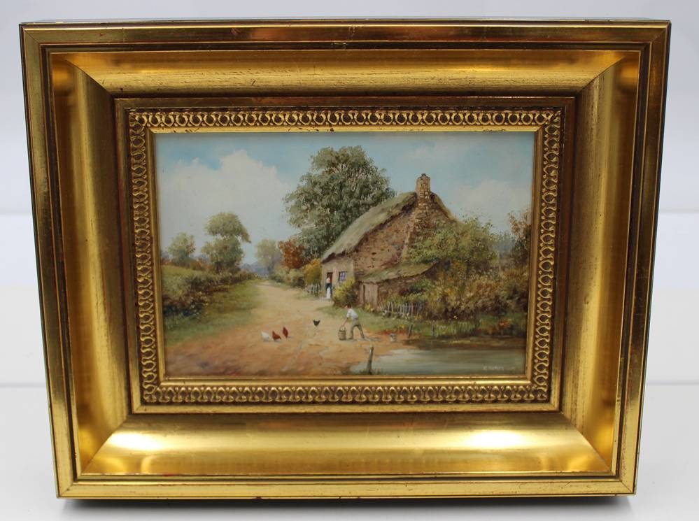 Richard SIMM (1926-2019), Gehöft, Öl/Kupfer, gut gerahmt, RG ca. 22 x 27cm [1]