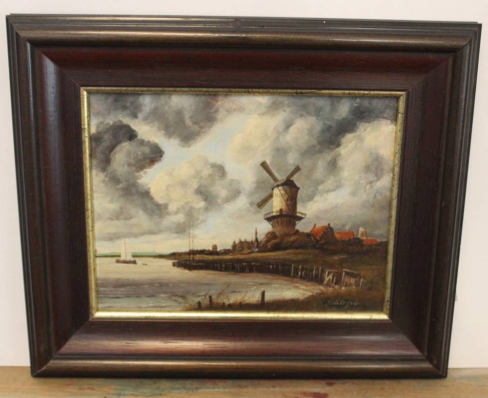 Schlegel, Landschaft mit Mühle, Öl/Hartfaser, gerahmt, RG 28 x 33,5cm [1]