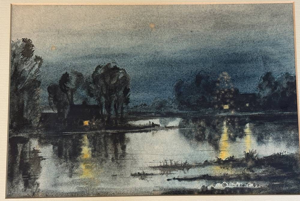 Simoleit Hans, (1908-1975,) 1947, Aquarell, Häuser am See, gut gerahmt/Glas, RG 42x50 cm