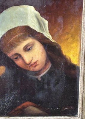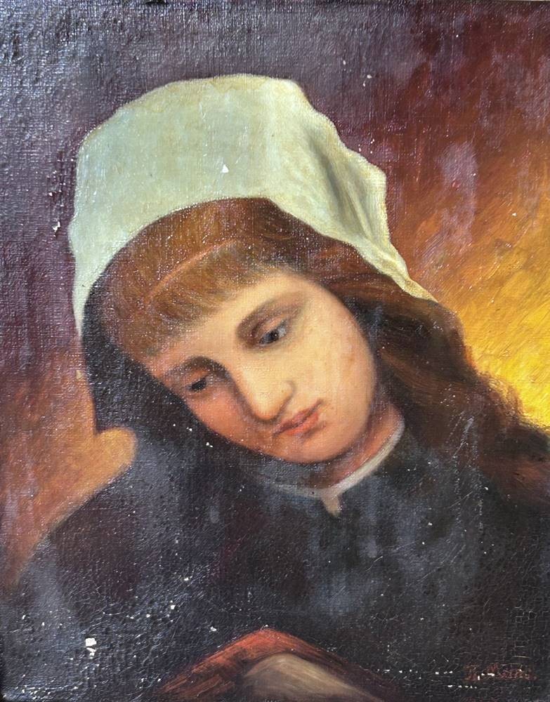 TH. Meines "Mädchenportrait" Öl/Leinen, Farbabplatzer, alt gerahmt, RG- 50x41 cm, [1]