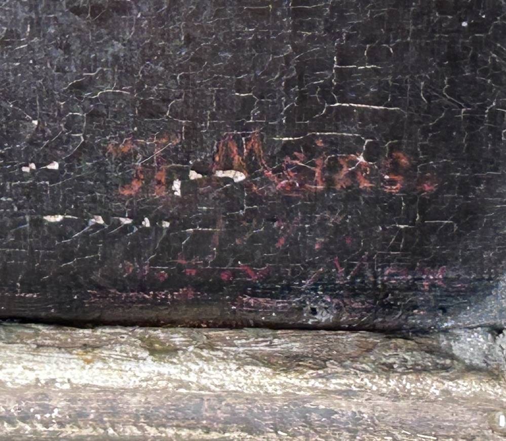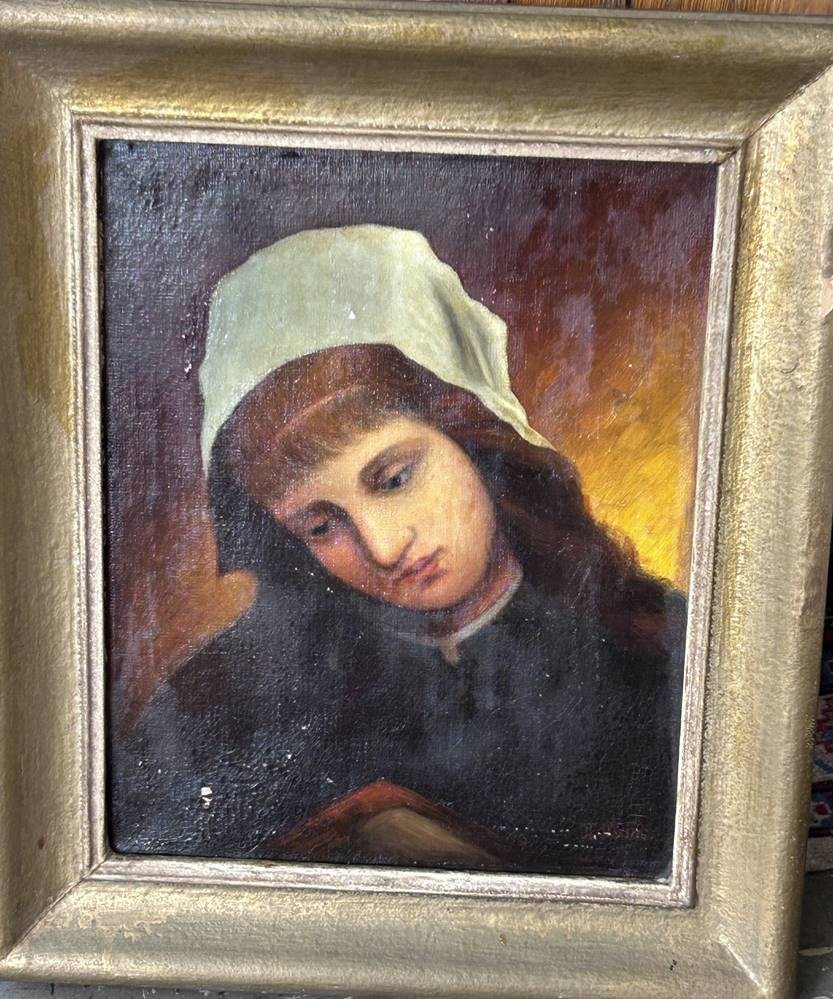 TH. Meines "Mädchenportrait" Öl/Leinen, Farbabplatzer, alt gerahmt, RG- 50x41 cm,