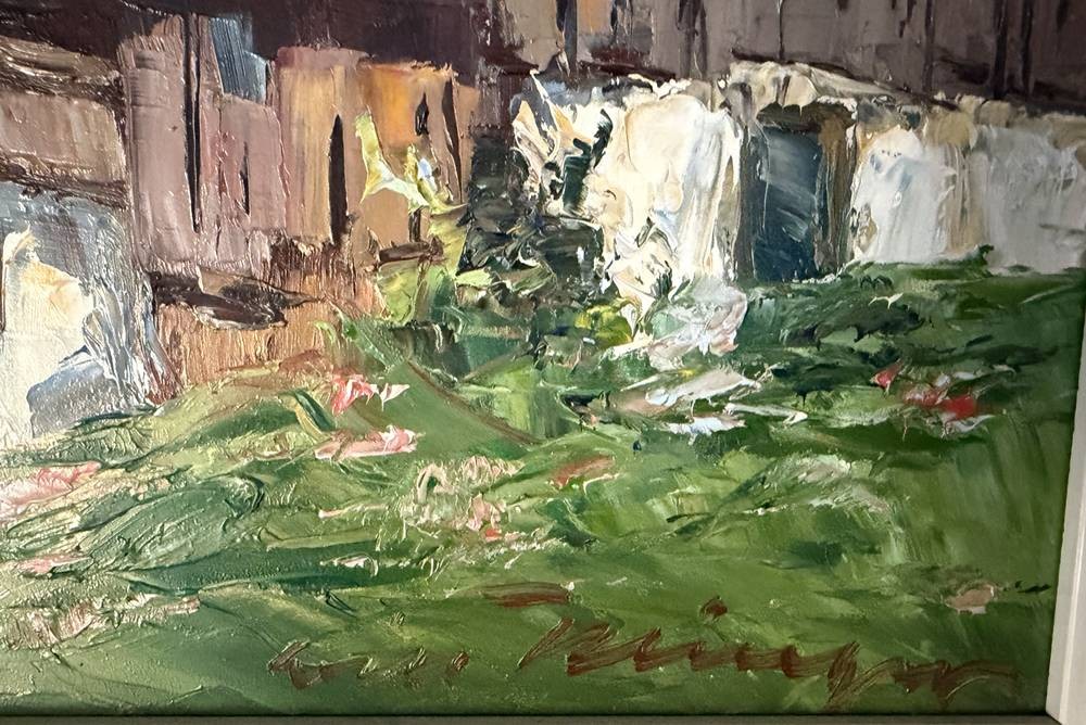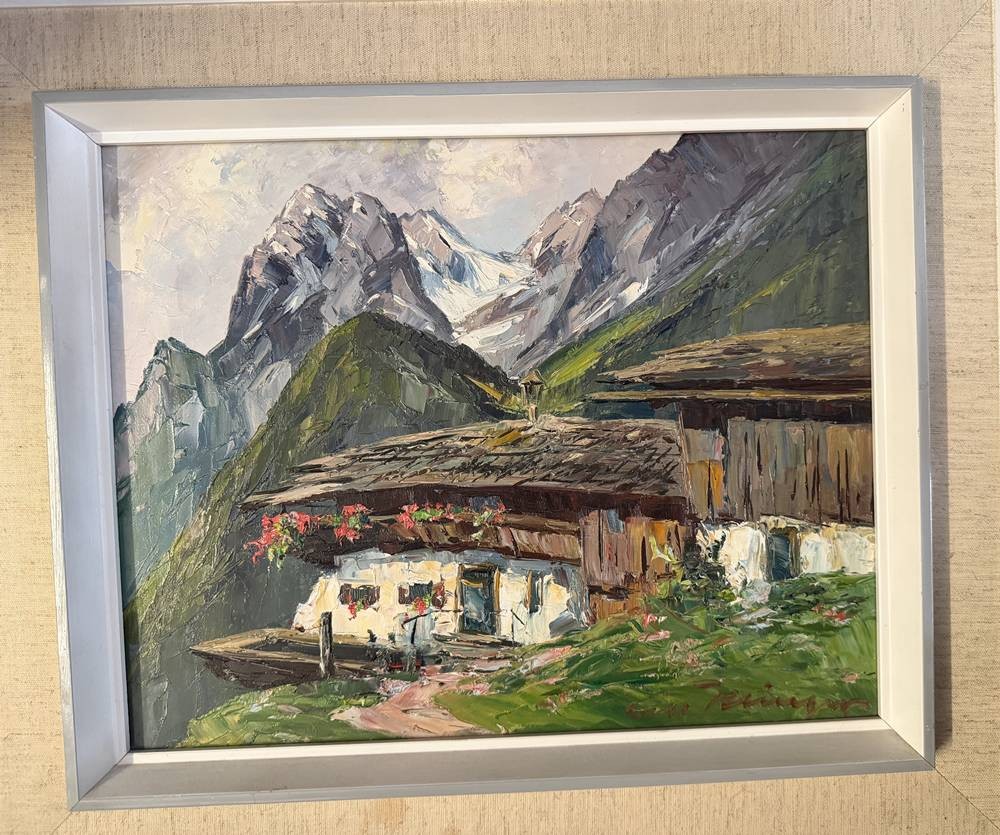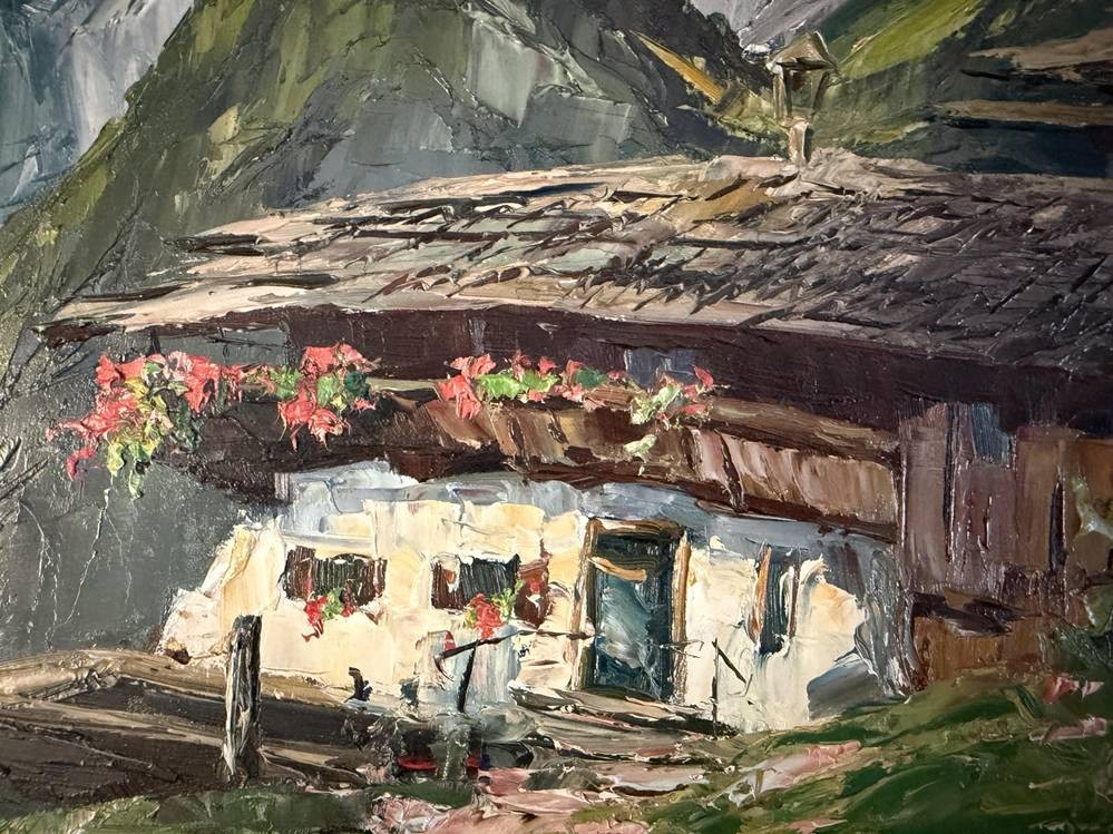 unleserl. in rot signiert "Bergbauernhof" Öl/Platte, gerahmt, RG 44x53 cm [1]