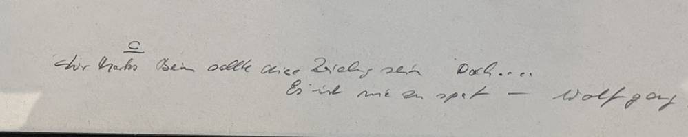 unleserl. sign. Aquarell, 21x23 cm, ger/Glas, RG 66x51 cm, mit Widmung oder ähnliches..? [1]