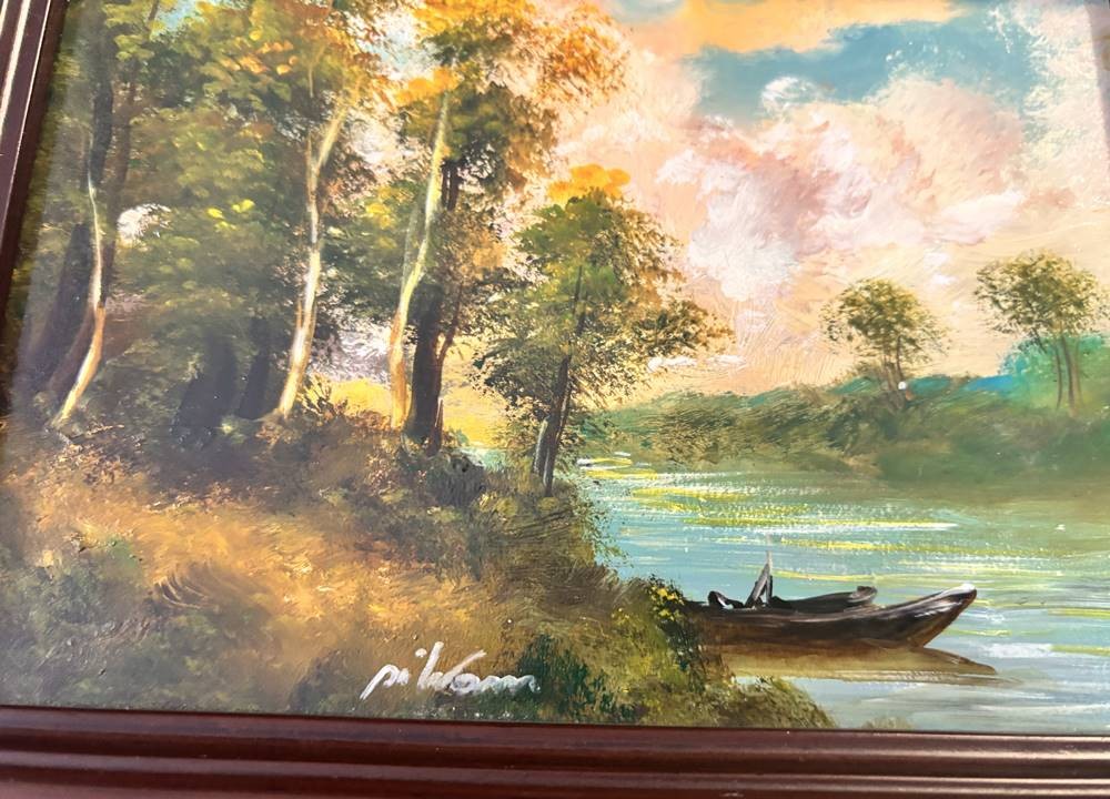 unleserl. sign. Flusslandschaft, Öl/Platte, breit gereahmt, RG ca. 22x26 cm [1]
