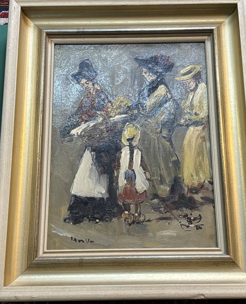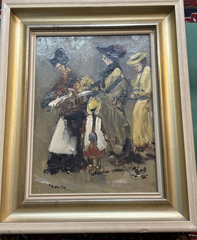unleserl. sign. "Frauen beim Kirchgang" Öl/Platte, gerahmt, RG 55x43 cm [1]