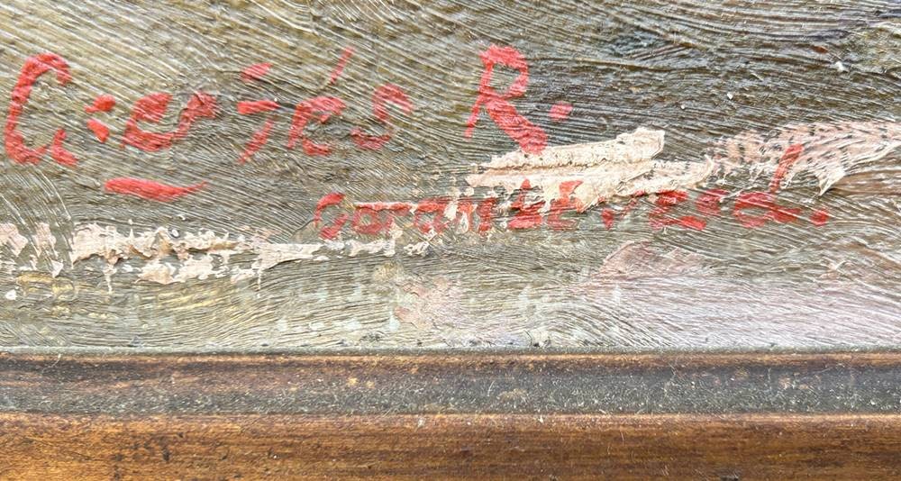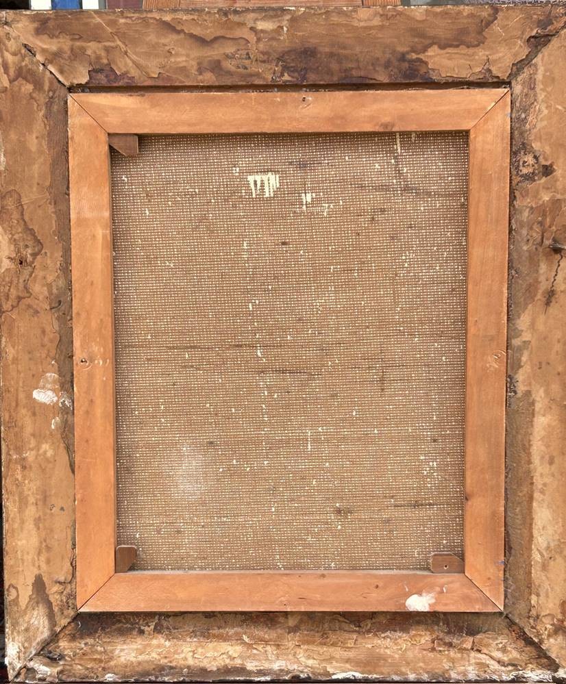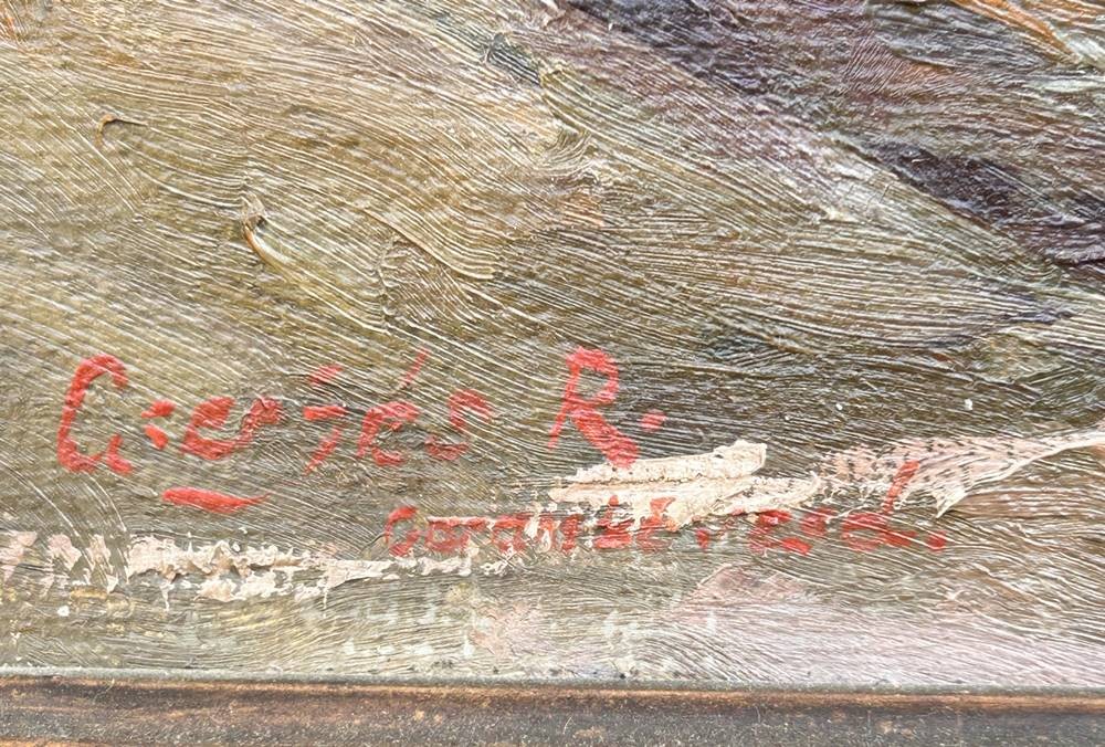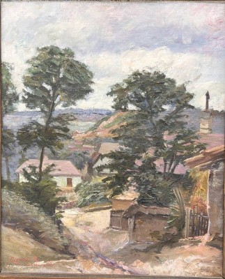 unleserl. sign. Gemälde "Häuser" Öl/Leinen, alt gerahmt, RG ca. 80x68 cm [1]