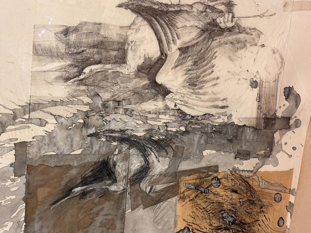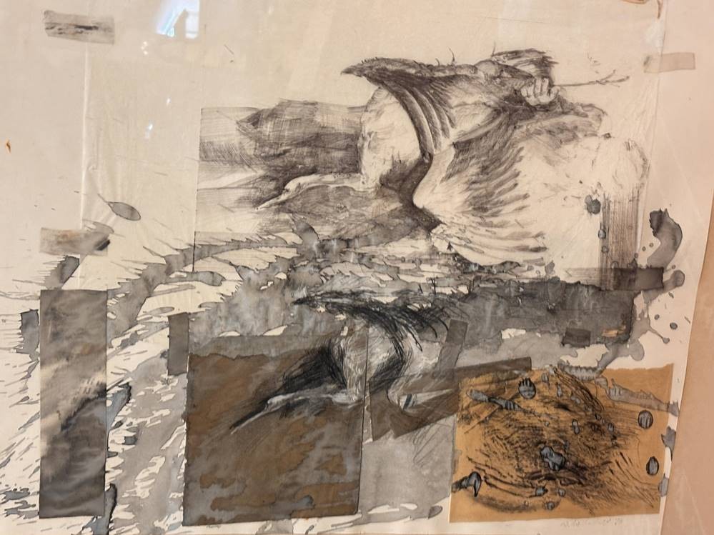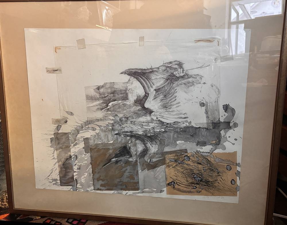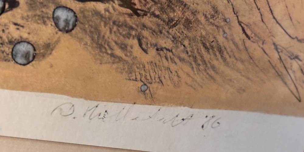 unleserl. sign. grosses Aquarell auf 2 Blättern?, 1986, ger/Glas, RG 71x85 cm, Sperrgut [1]