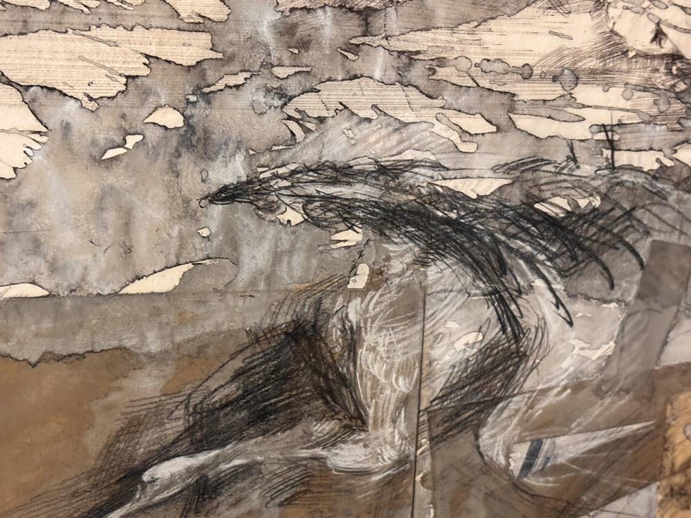 unleserl. sign. grosses Aquarell auf 2 Blättern?, 1986, ger/Glas, RG 71x85 cm, Sperrgut