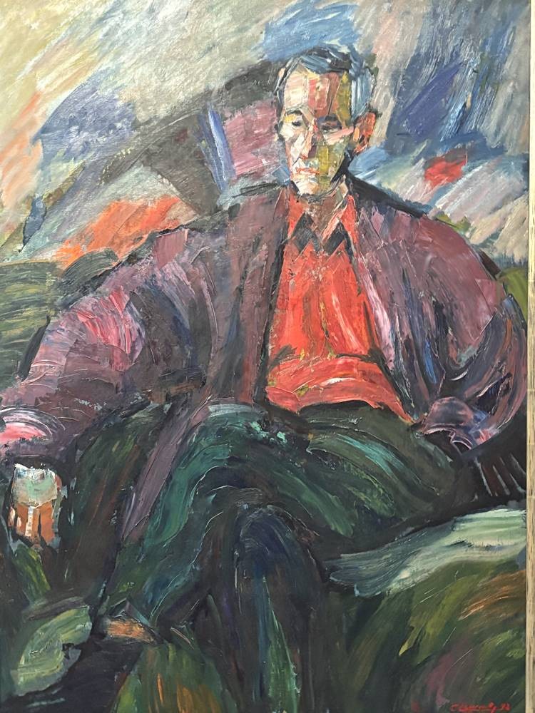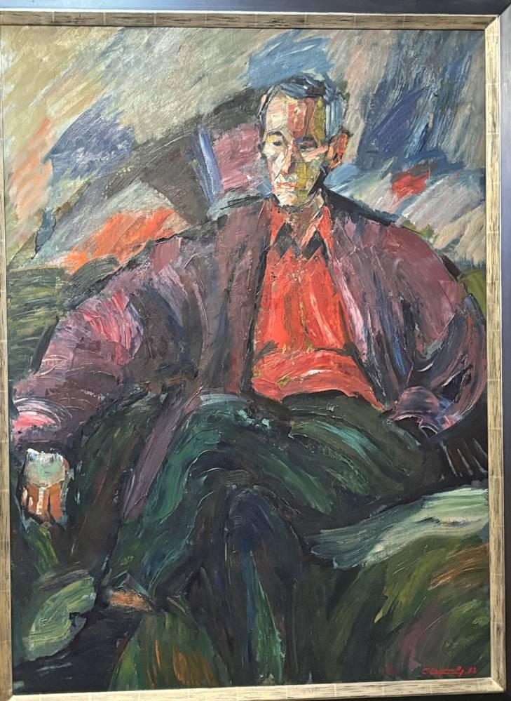 unleserl. sign. grosses Männerportrait, 1992, Öl/Platte, gersahmt, RG 133x100 cm, (Sperrgut) [1]