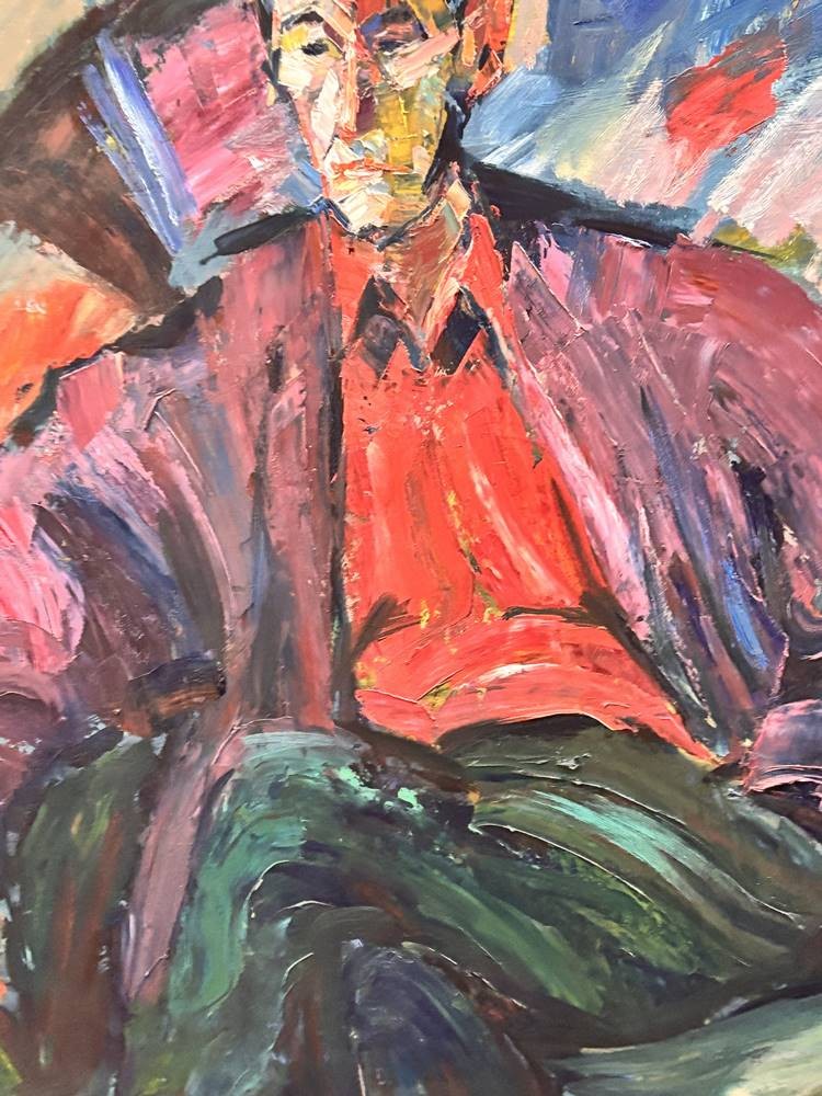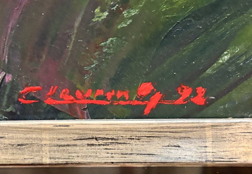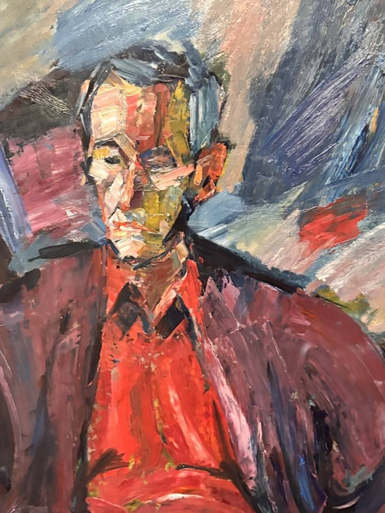 unleserl. sign. grosses Männerportrait, 1992, Öl/Platte, gersahmt, RG 133x100 cm, (Sperrgut)