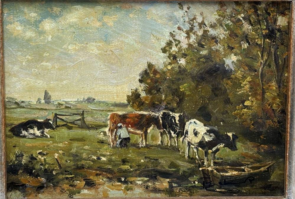 unleserl. sign. "Kühe auf der Weide" Öl/Platte, gerahmt, RG 26x21 cm [1]