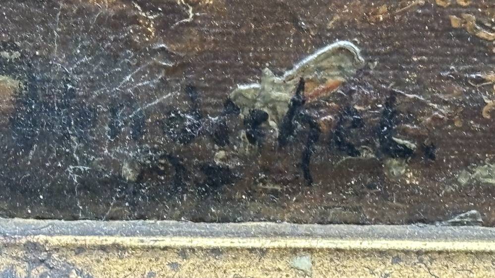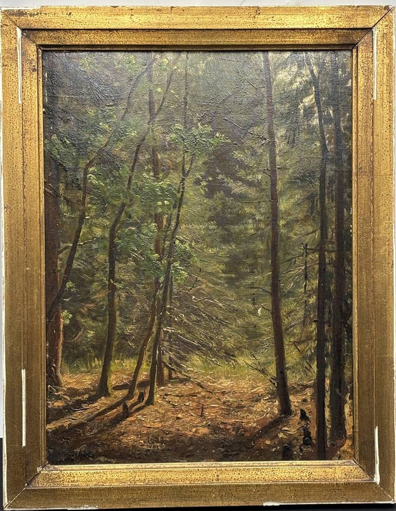 unleserl. sign. Waldweg, Öl/Platte, alt gerahmt, RG 51x41 cm [1]