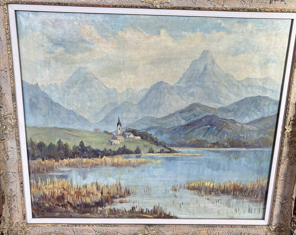 unleserl. signiert"Bergsee", Öl/Leinen, gerahmt, RG 63x72 cm [1]
