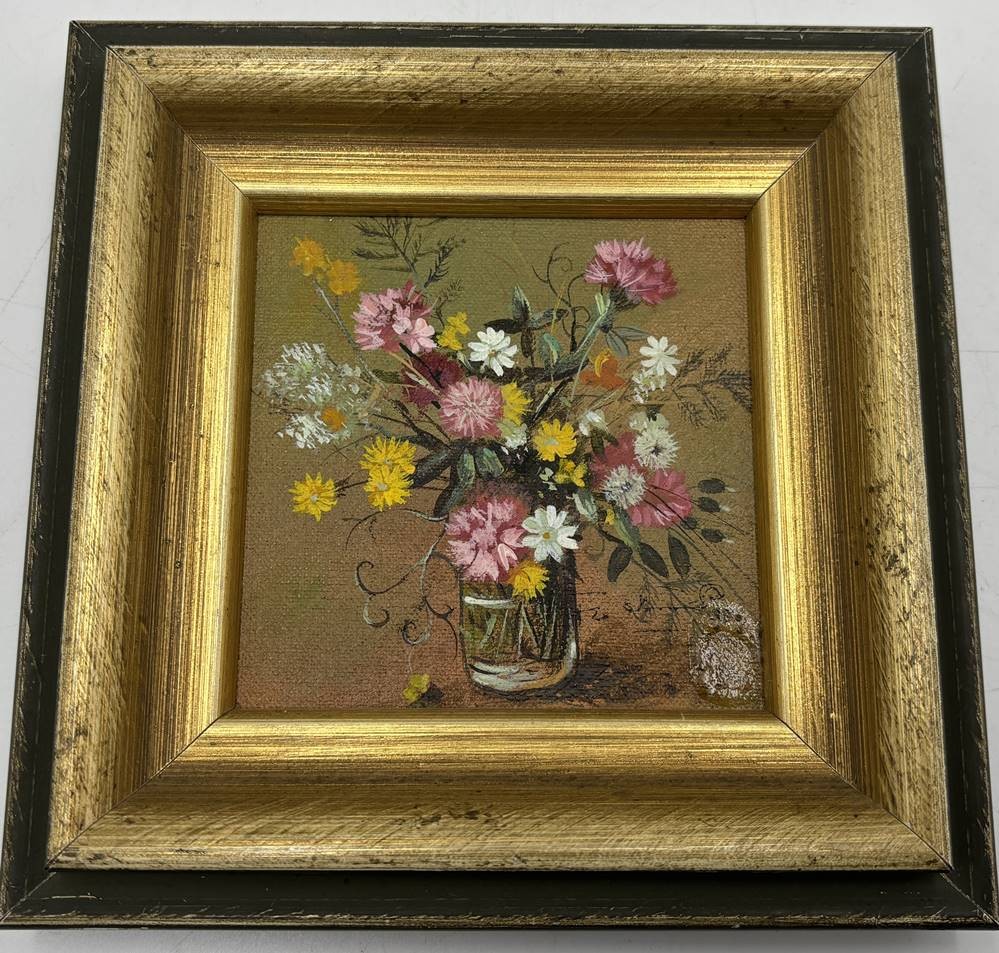 unleserl. signiert, Blumenbild, Öl/Platte, gerahmt, RG 16x16 cm [1]