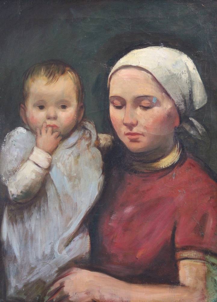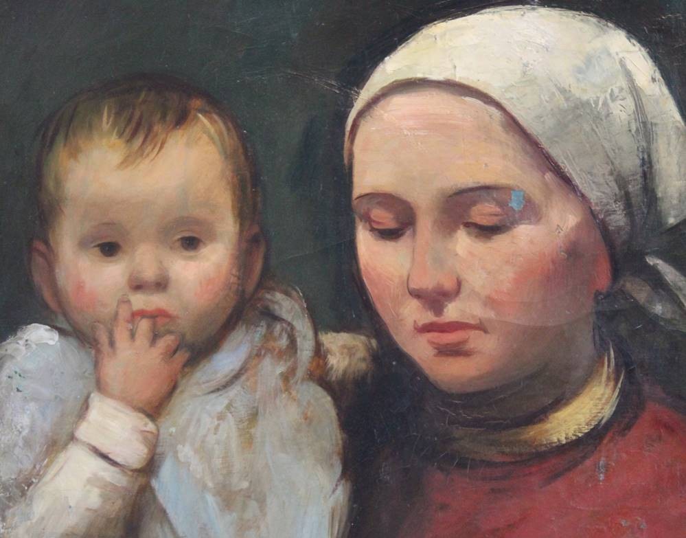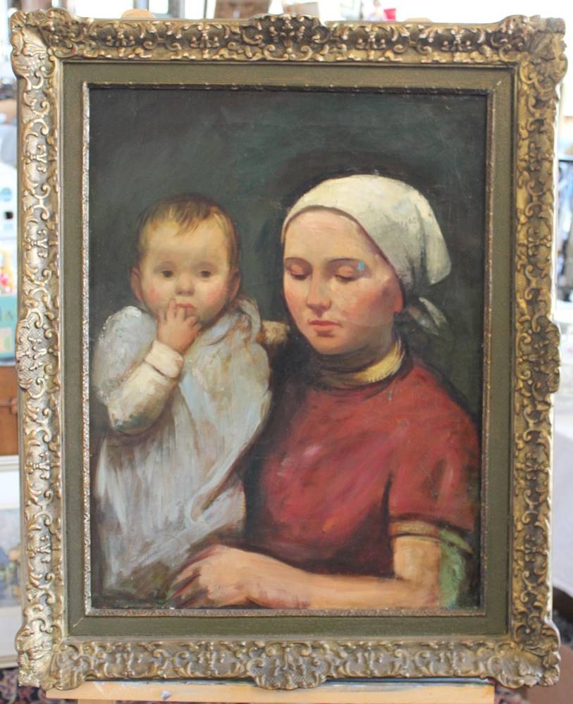 unleserl. signiert, Junge Mutter mit Kind, Öl/Leinwand, gerahmt, RG 81,5 x 66cm [1]