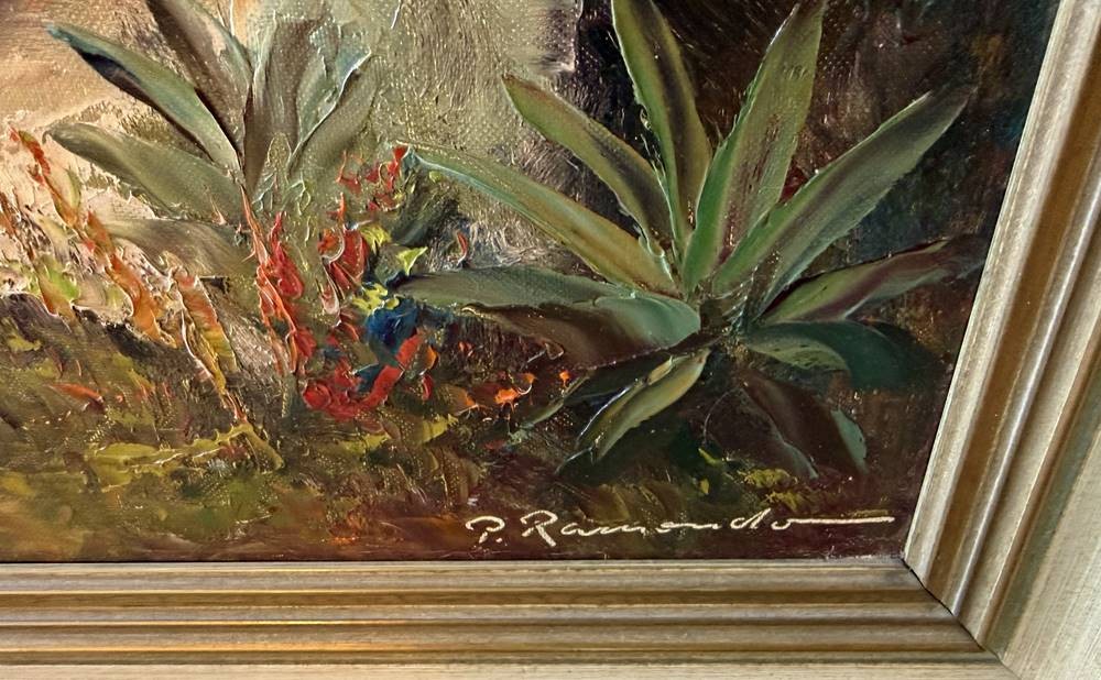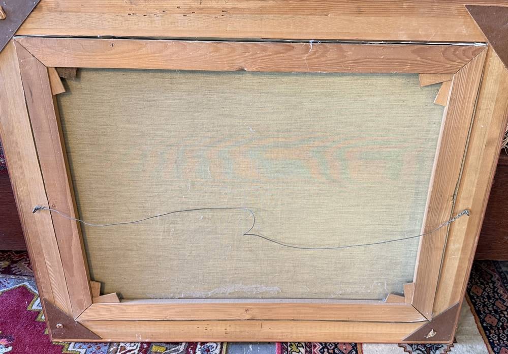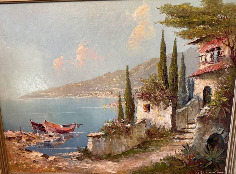 unleserl. signiert, südliche Seelandschaft, wohl Varenna am Comosee, Öl/Leinen, gerahmt, RG 75x97 cm, (Sperrgut-Versand) [1]