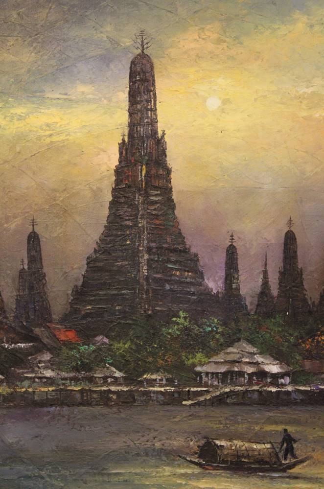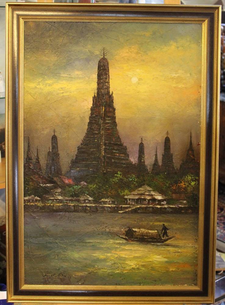 unleserl.signiert, Wat Arun auch bekannt als Tempel der Morgenröte, datiert (19)77, Öl/Leinwand, gerahmt, RG 85 x 60cm [1]
