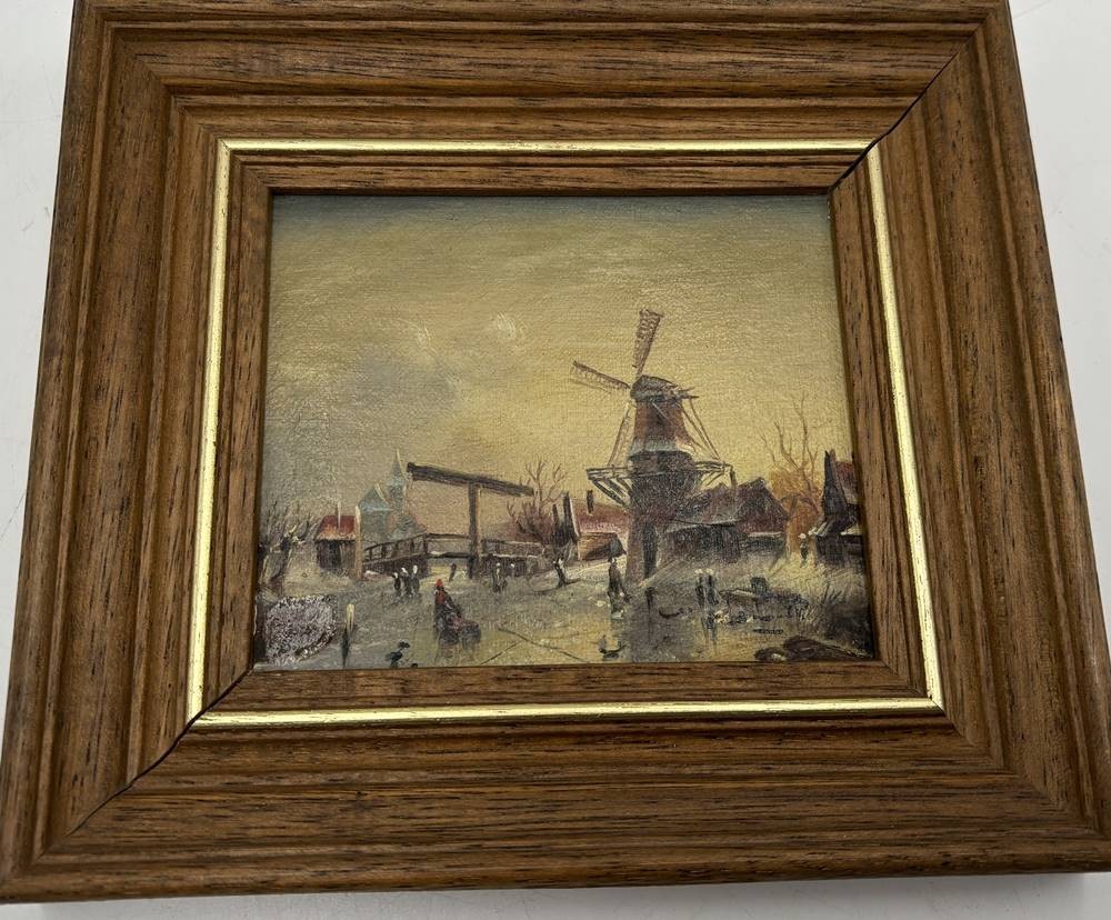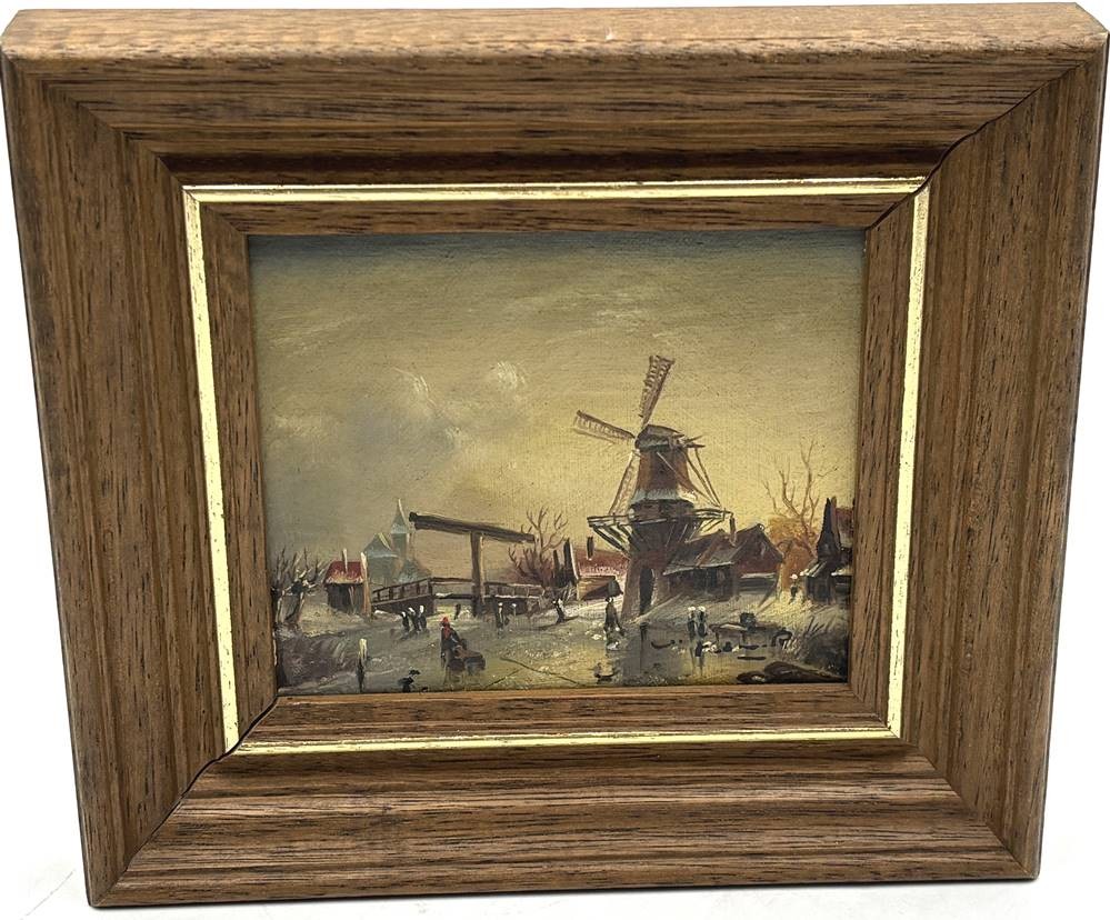 unleserl. signiert "Winterlandschaft mit Mühle" Holland, Öl/Platte, gerahmt, RG 17x19 cm