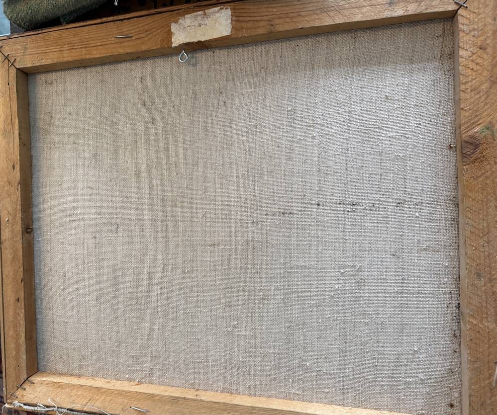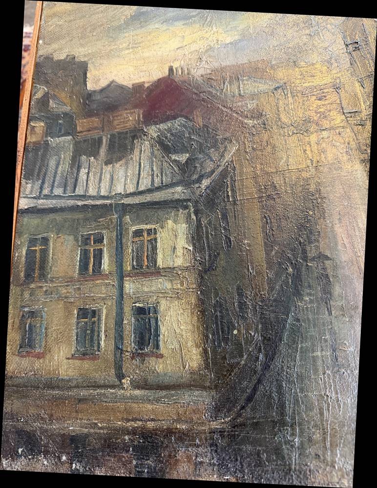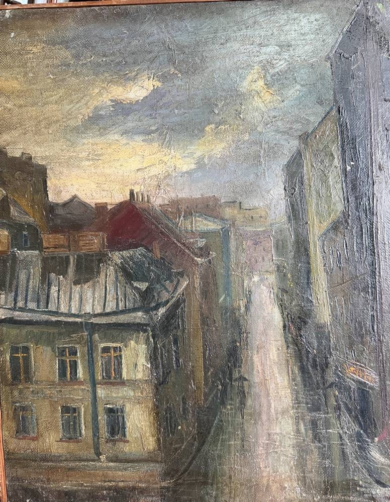 unleserl. signierte Strassenansicht um 1920, Öl/Leinen, schmal gerahmt, RG 60x47 cm,minim. Farbabplatzer, reinigungsbedürftig [1]