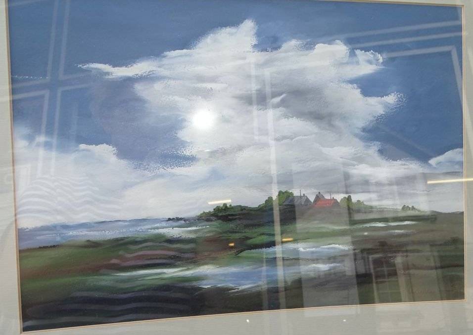 unleserl. signiertes Aquarell 1998 "Hallig vor Wolkenhimmel", ger/Glas, RG 48x57 cm [1]