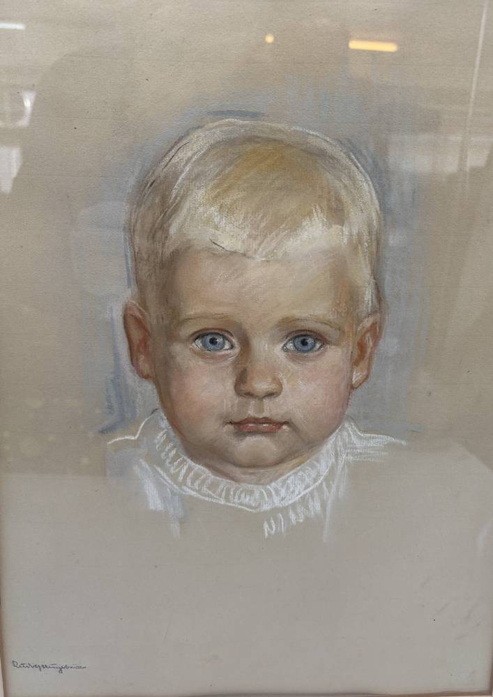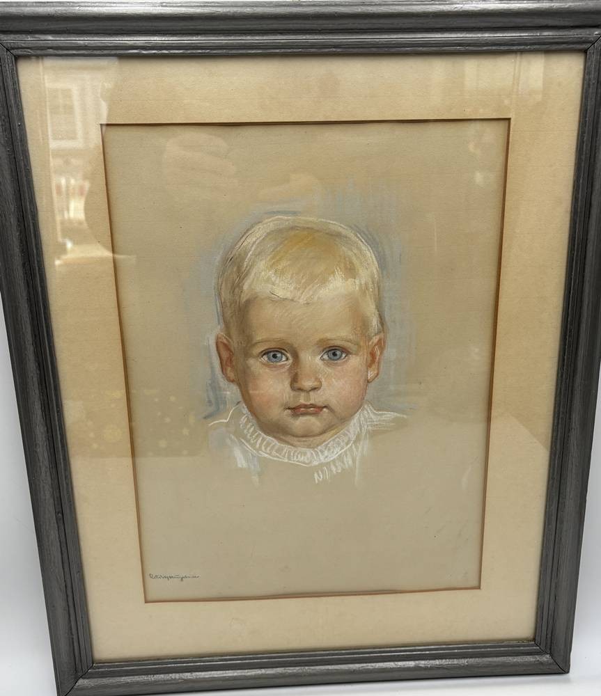 unleserlich signiertes Kinderportrait, Mischtechnik, ger/Glas, RG 45x55 cm [1]