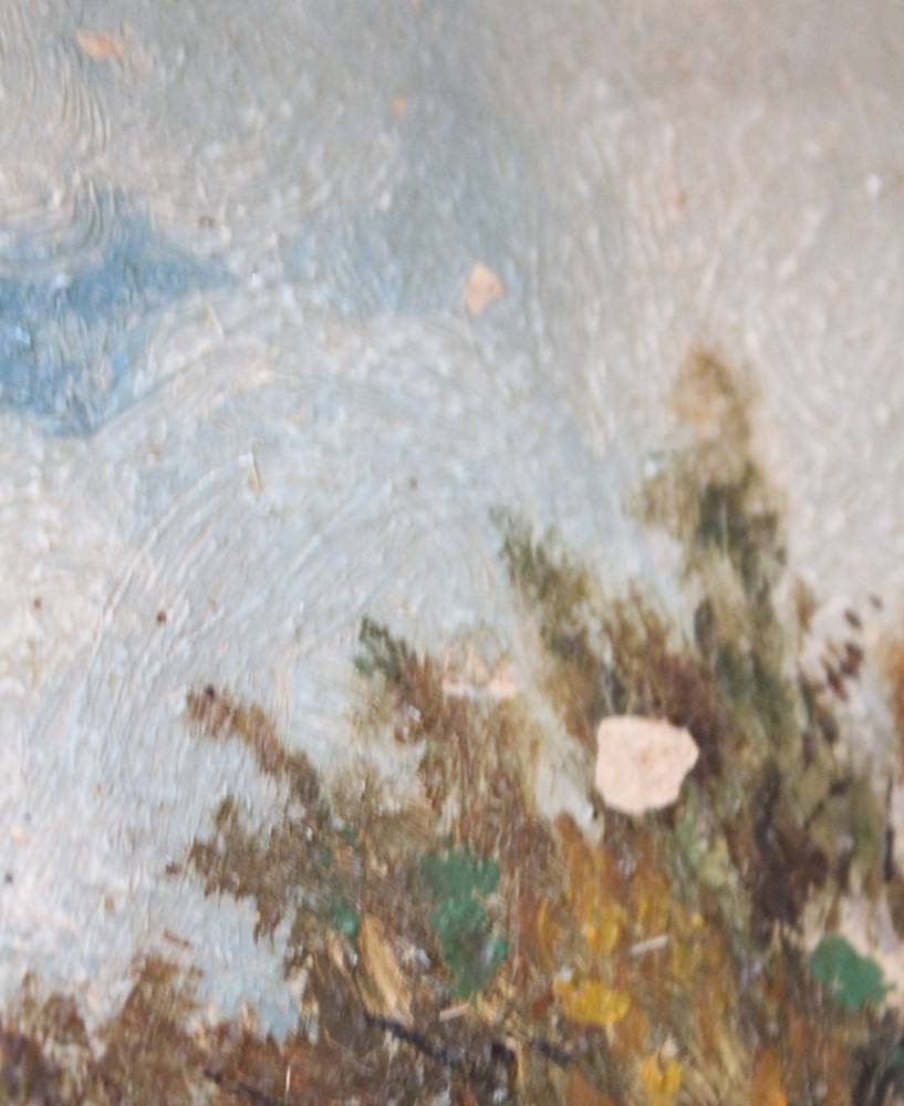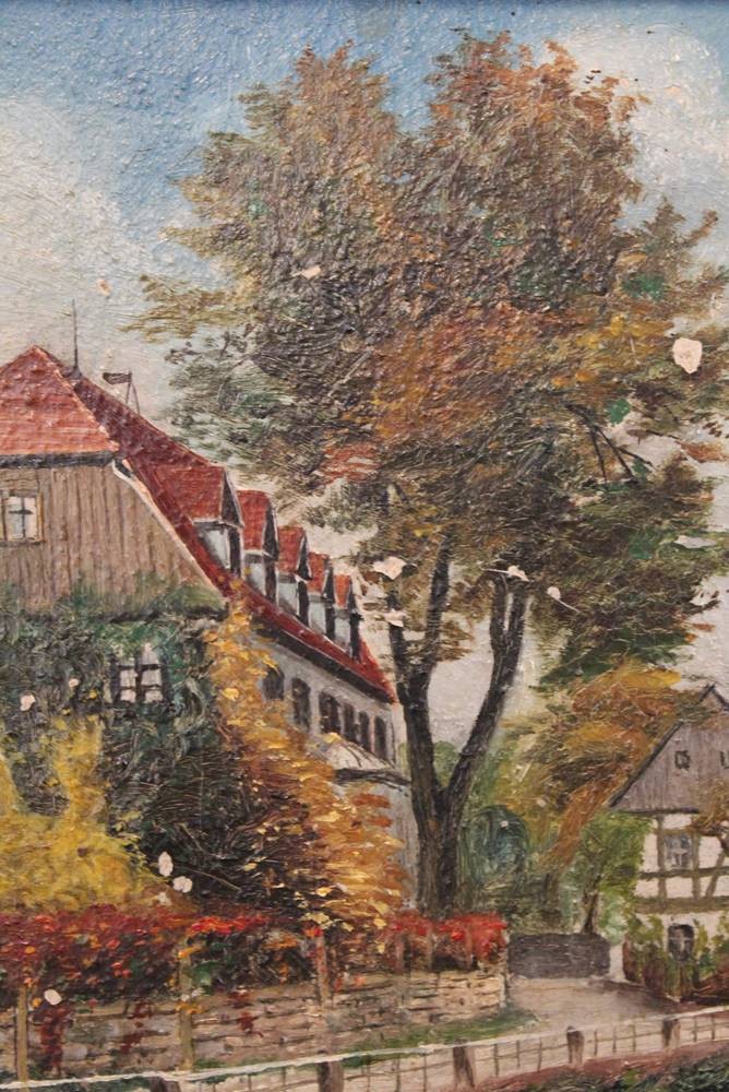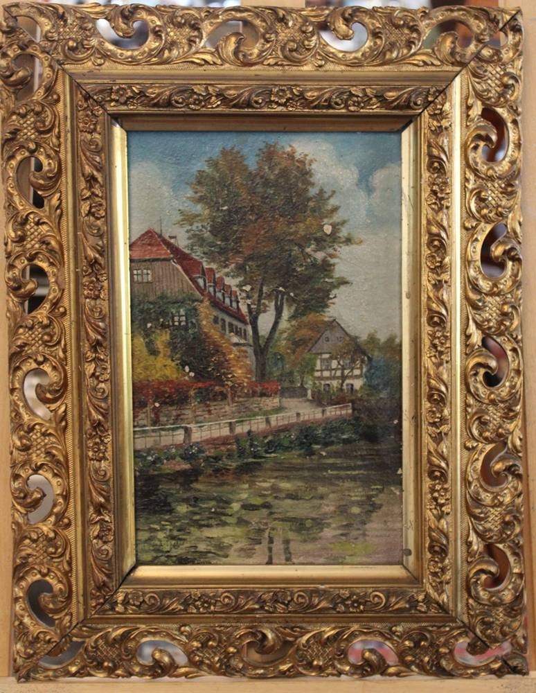 unsigniert, Häuser am Kanal, Öl/Leinwand, Alt gerahmt, restau.bedrüftig, RG 49 x 36,5cm [1]