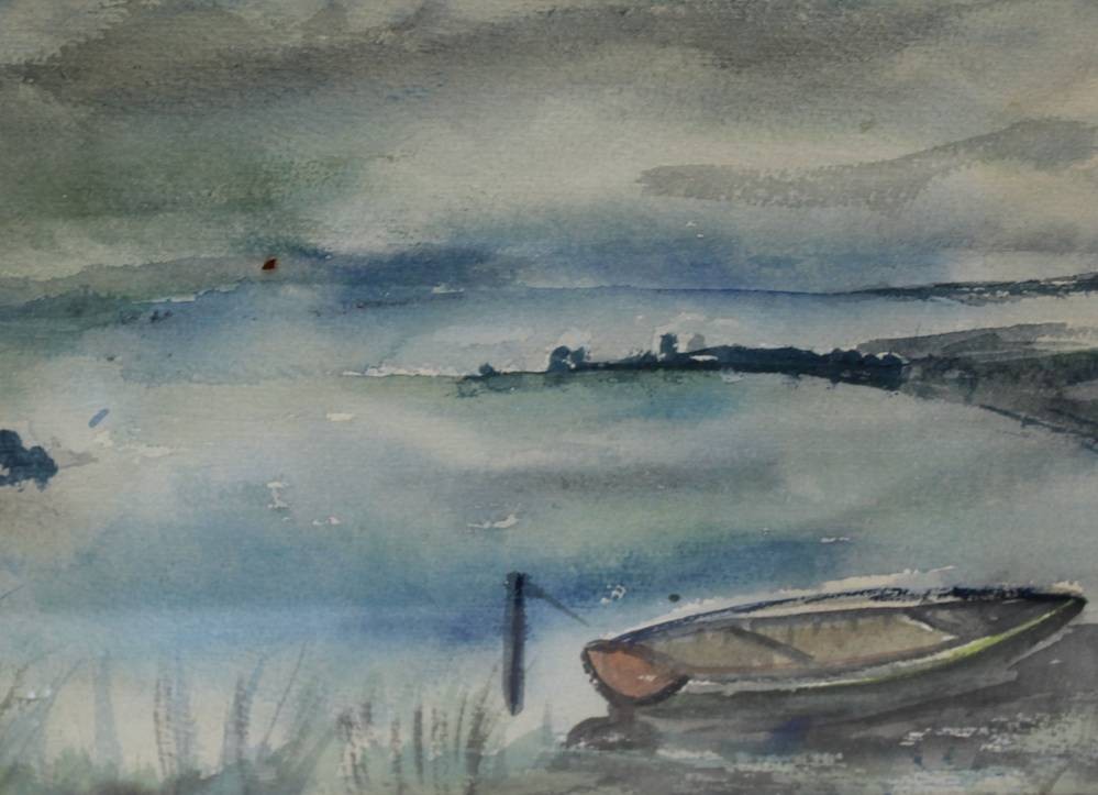 unsigniertes Aquarell, Boot am See, verso Zettel "gemalt H.Neuner", ger./Glas, RG 28 x 35cm