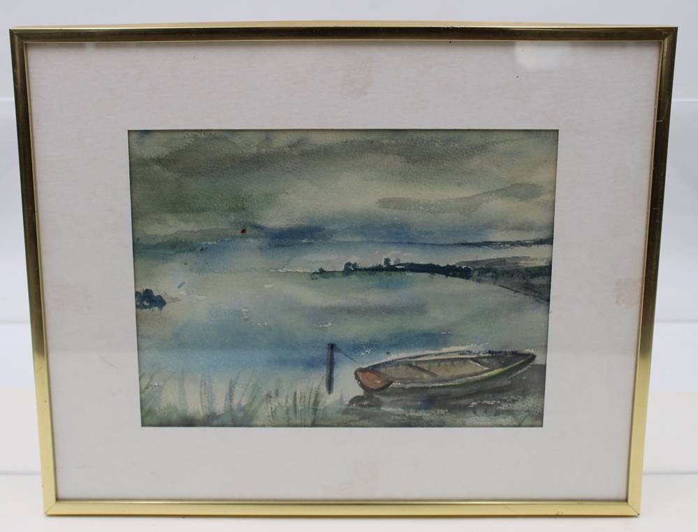 unsigniertes Aquarell, Boot am See, verso Zettel "gemalt H.Neuner", ger./Glas, RG 28 x 35cm [1]