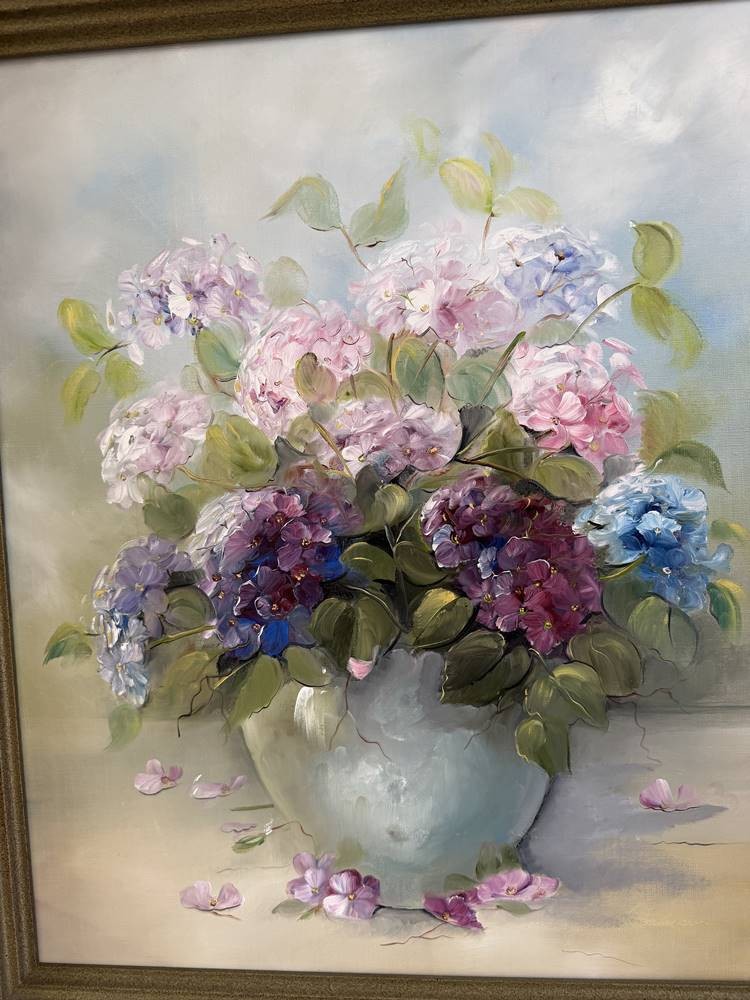 unsigniertes Blumenstilleben, Öl/Leinen, gut gerahmt, RG 73x63 cm
